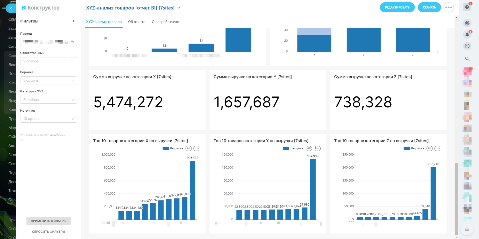 XYZ-анализ товаров [отчёт BI]