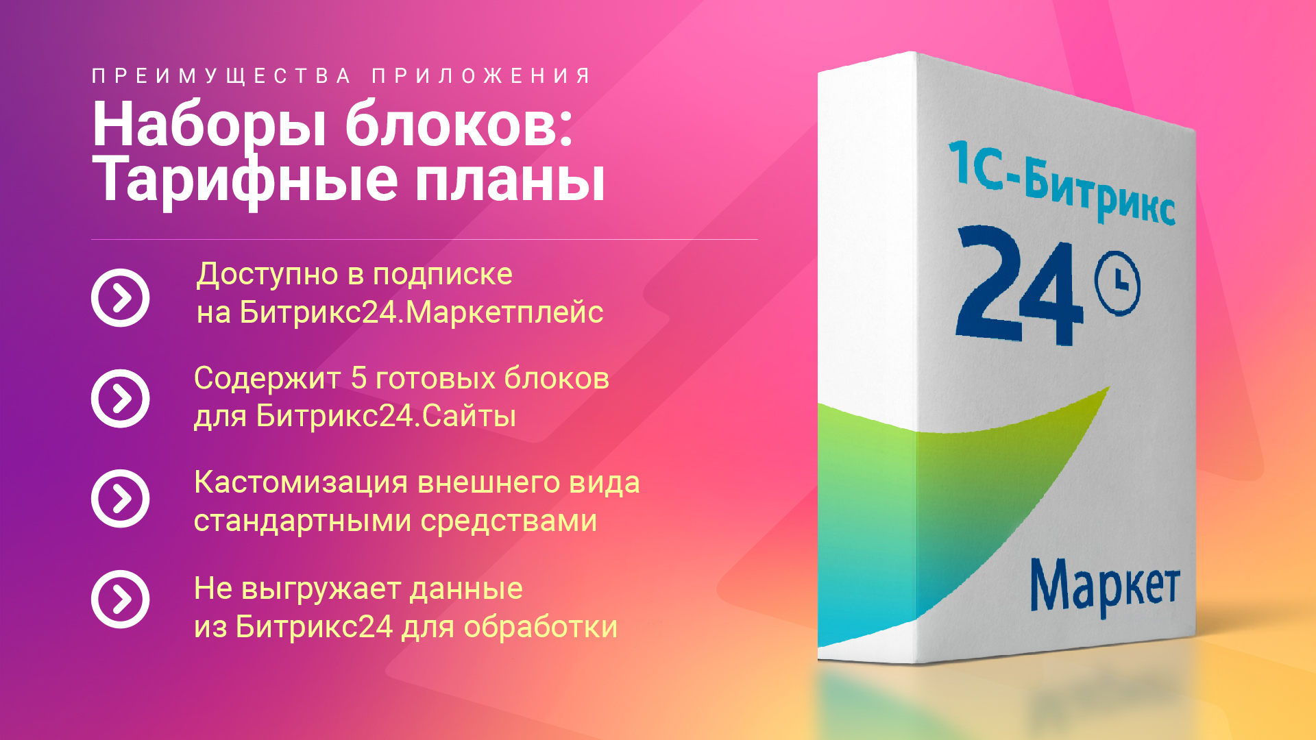 В наборе — 5 полностью настраиваемых блоков, совместимых со всеми типами сайтов и шаблонами Битрикс24.