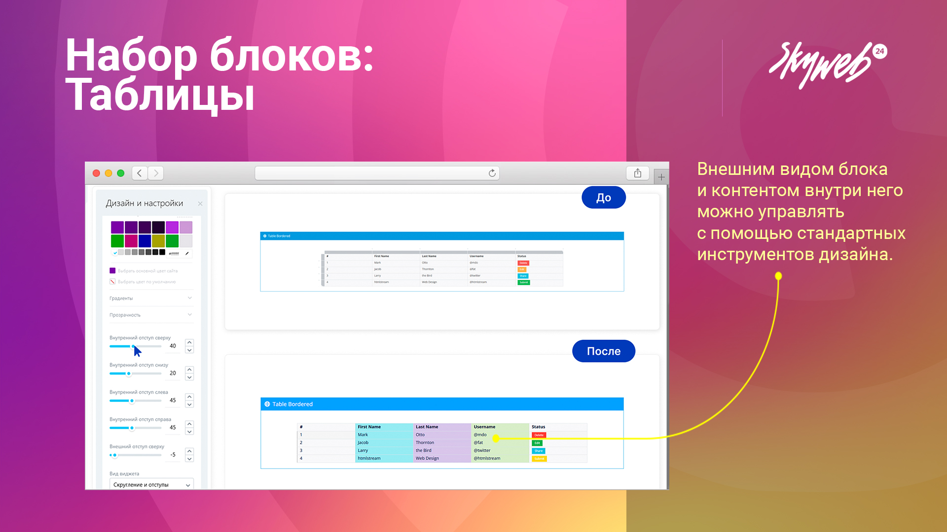 • Управление количеством столбцов и строк прямо в редакторе