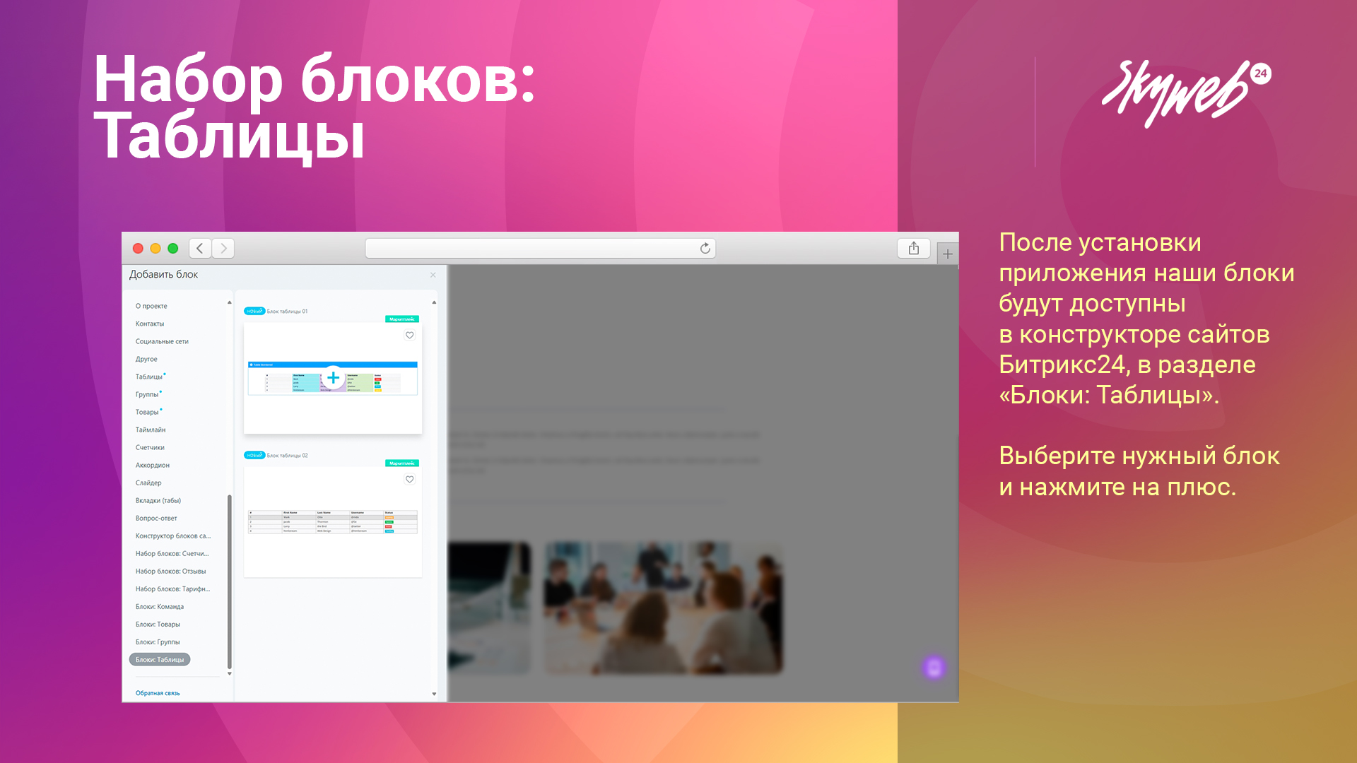 Готовые блоки с таблицами для Битрикс24.Сайты