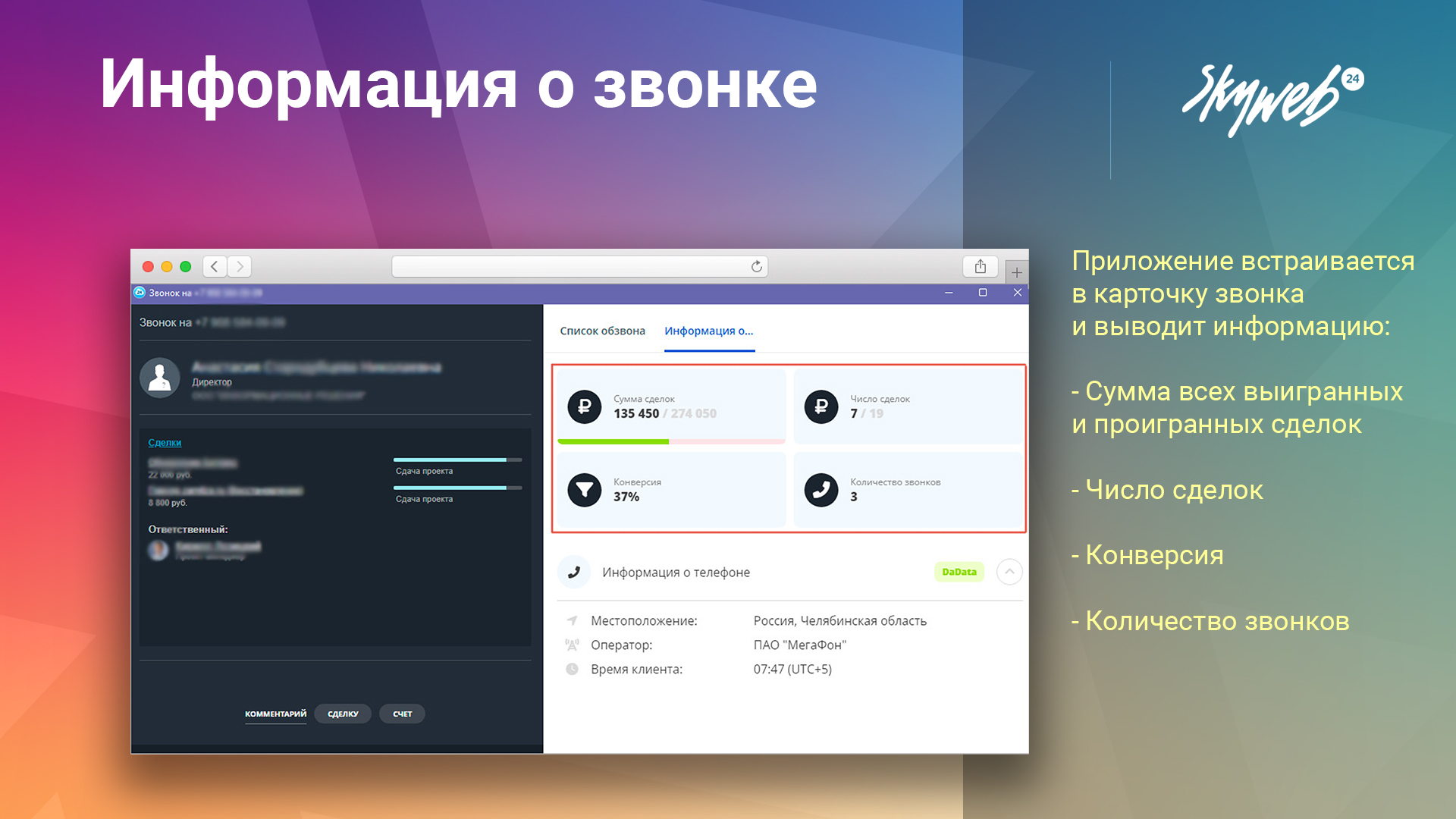 Мощный инструмент, который помогает менеджерам получить всю необходимую информацию о клиенте прямо во время звонка.