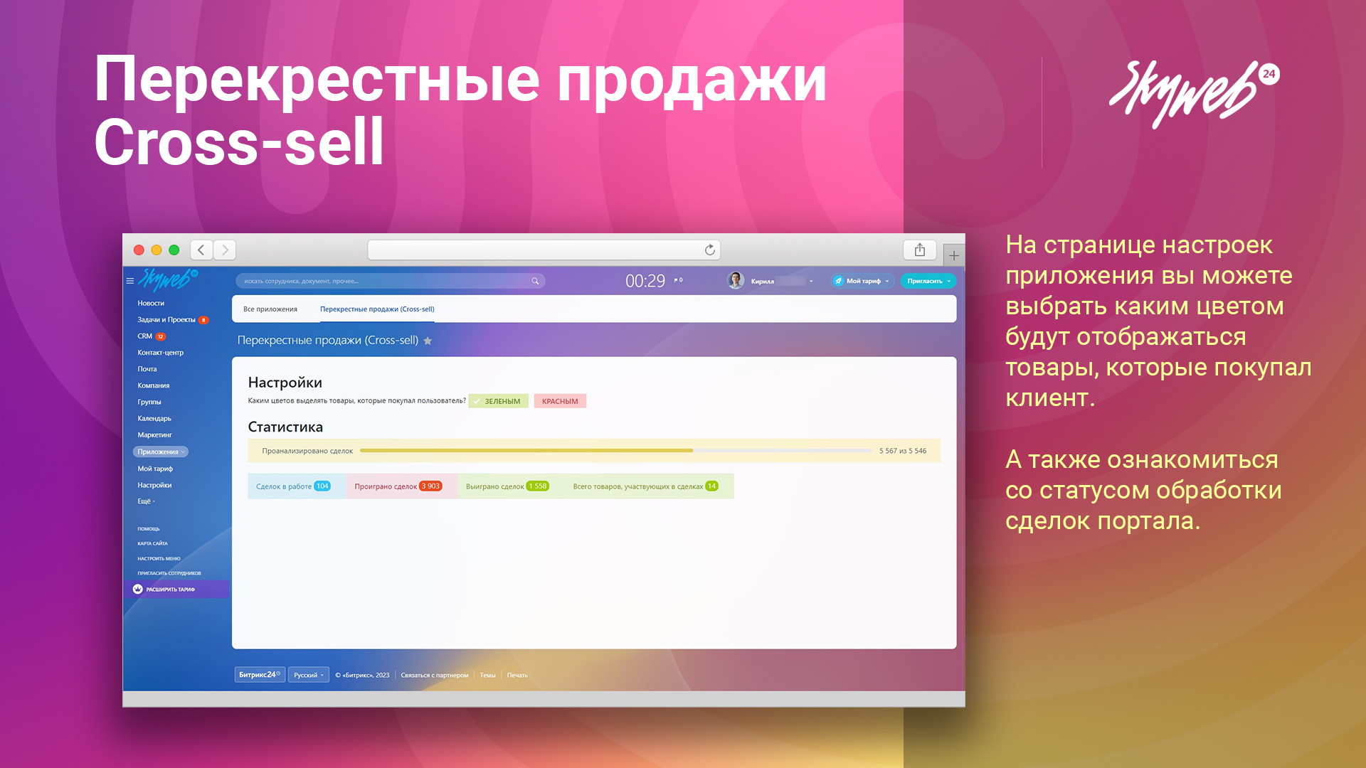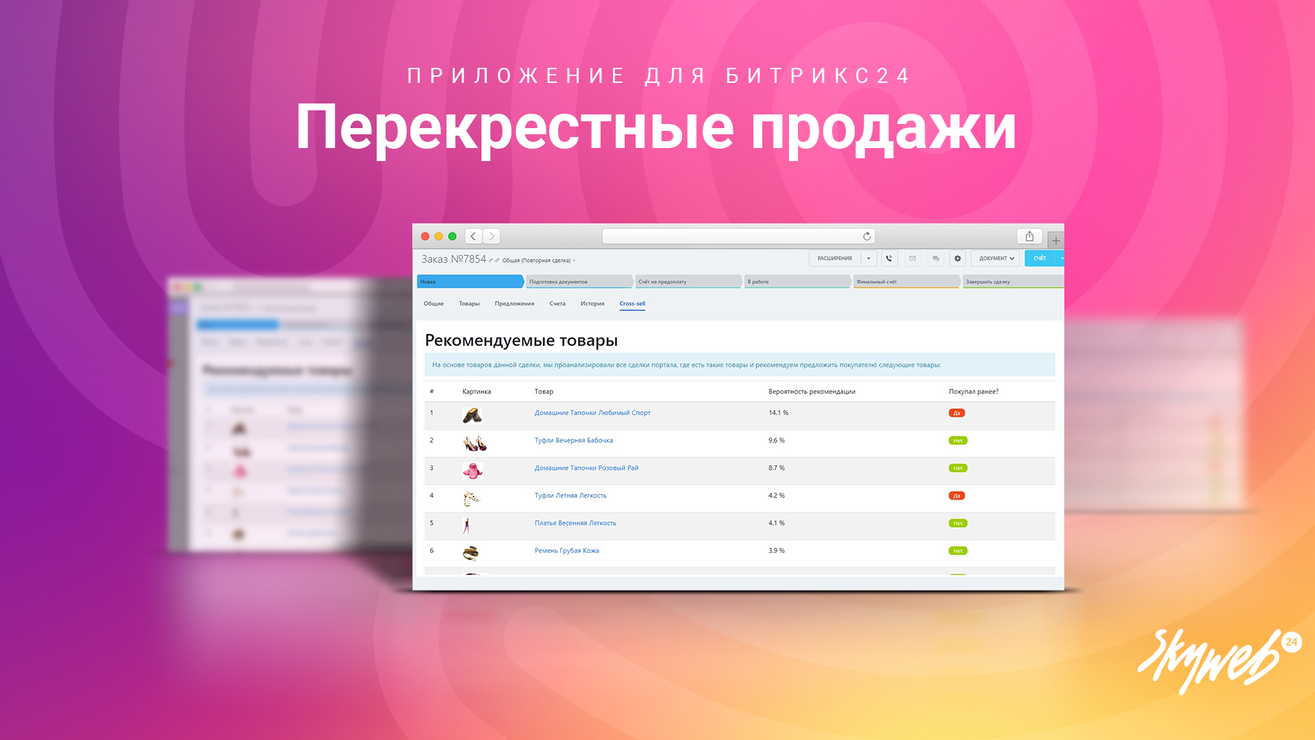 В стандартной CRM Битрикс24 нет удобного способа анализа предыдущих сделок для предоставления рекомендаций по товарам. "Перекрестные продажи" от Скайвеб24 решает эту проблему, предоставляя менеджерам возможность предлагать покупателям наиболее подходящие товары на основе анализа всех сделок CRM. Приложение анализирует предыдущие сделки и выявляет товары, участвовавшие в них, что помогает увеличить средний чек, оптимизировать запасы и повысить удовлетворенность клиентов.