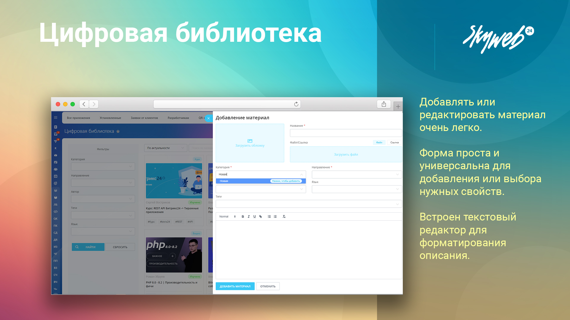 Организуйте корпоративную библиотеку в Б24, добавляйте книги, видео, ссылки