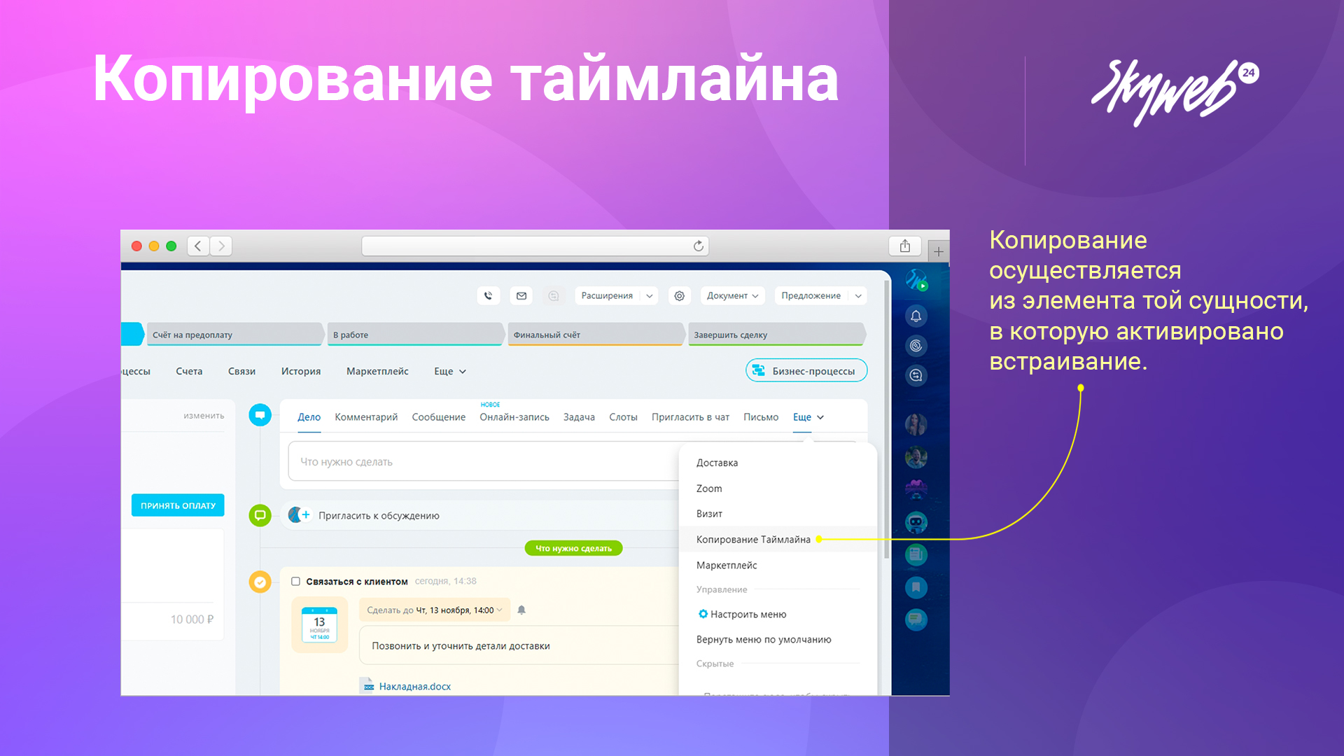 Прозрачность процессов и удобство работы: таймлайн CRM теперь можно переносить целиком