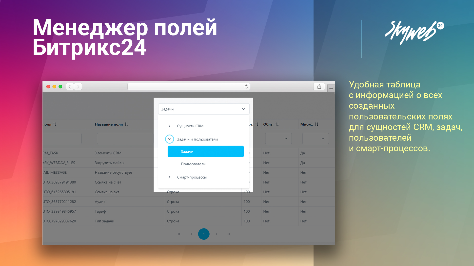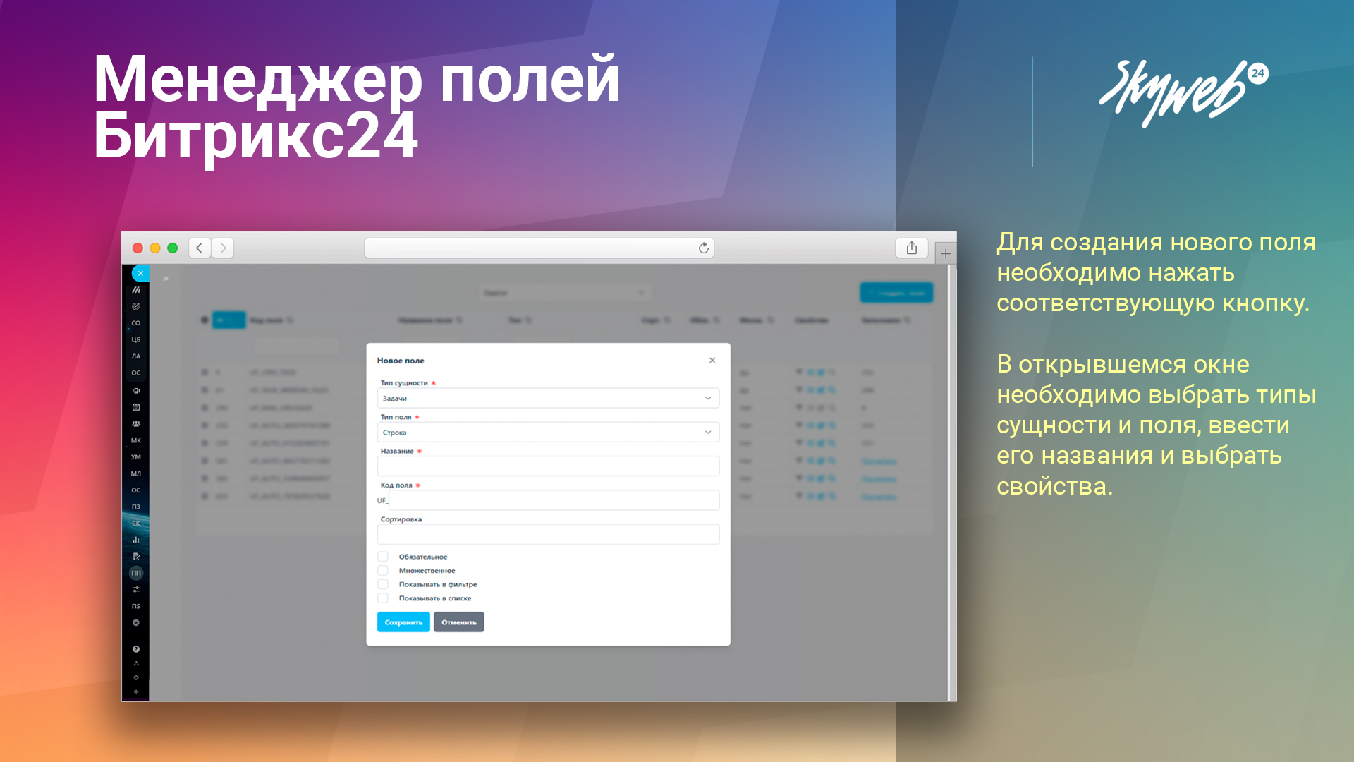 Попробуйте "Менеджер полей" от Скайвеб24 уже сегодня и упростите управление пользовательскими полями в вашей CRM Битрикс24!