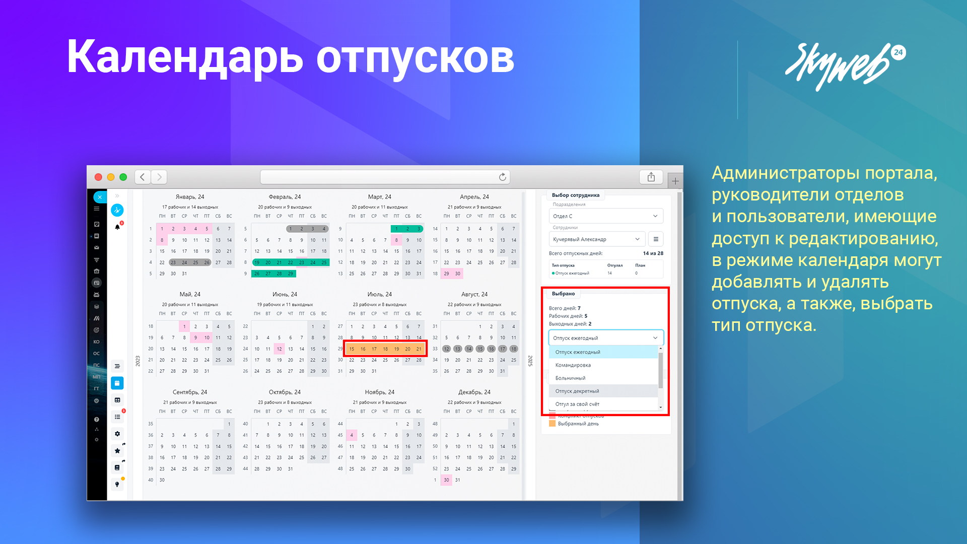 Оптимизируйте процесс планирования и управления отпусками с приложением «Календарь отпусков» от СкайВеб24 уже сегодня!