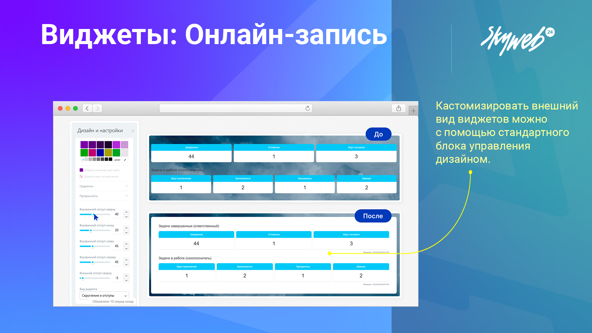 Виджеты из набора можно использовать для создания персонализированных виджетов с помощью «Конструктора виджетов».