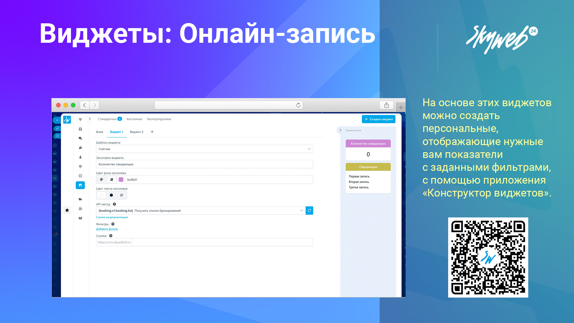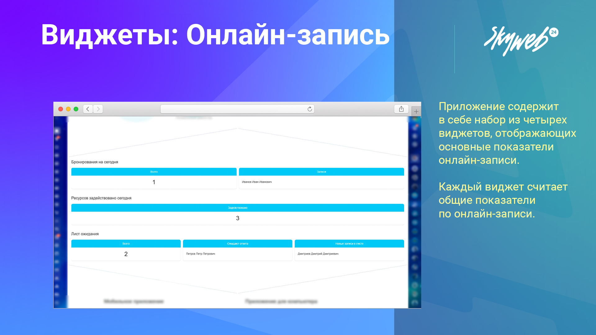 Набор состоит из 4 виджетов, которые берут данные из функционала «Онлайн-запись».