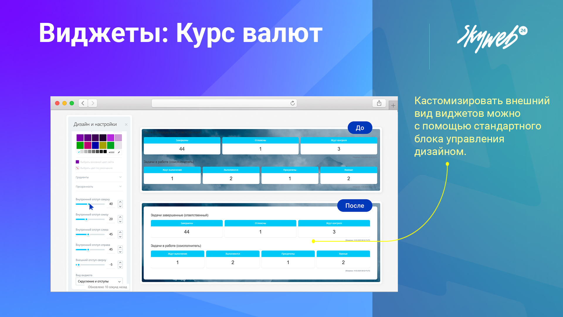 Виджеты из набора можно использовать для создания персонализированных виджетов с помощью «Конструктора виджетов».