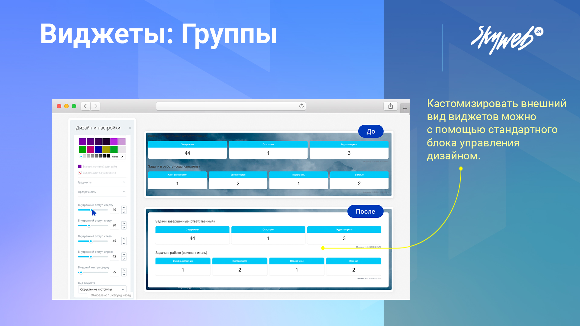 Виджеты из набора можно использовать для создания персонализированных виджетов с помощью «Конструктора виджетов».