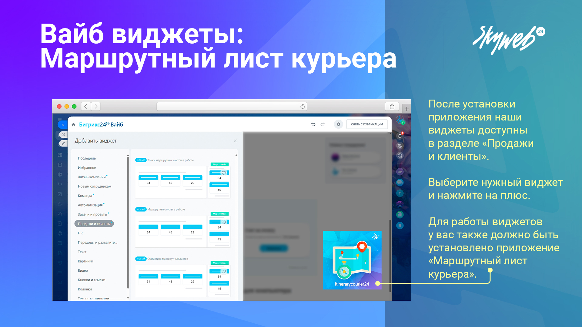 Благодаря использованию виджетов на главной странице Битрикс24, менеджеры и руководители отдела продаж смогут не не заходя в приложение, видеть общую картину по маршрутным листам.