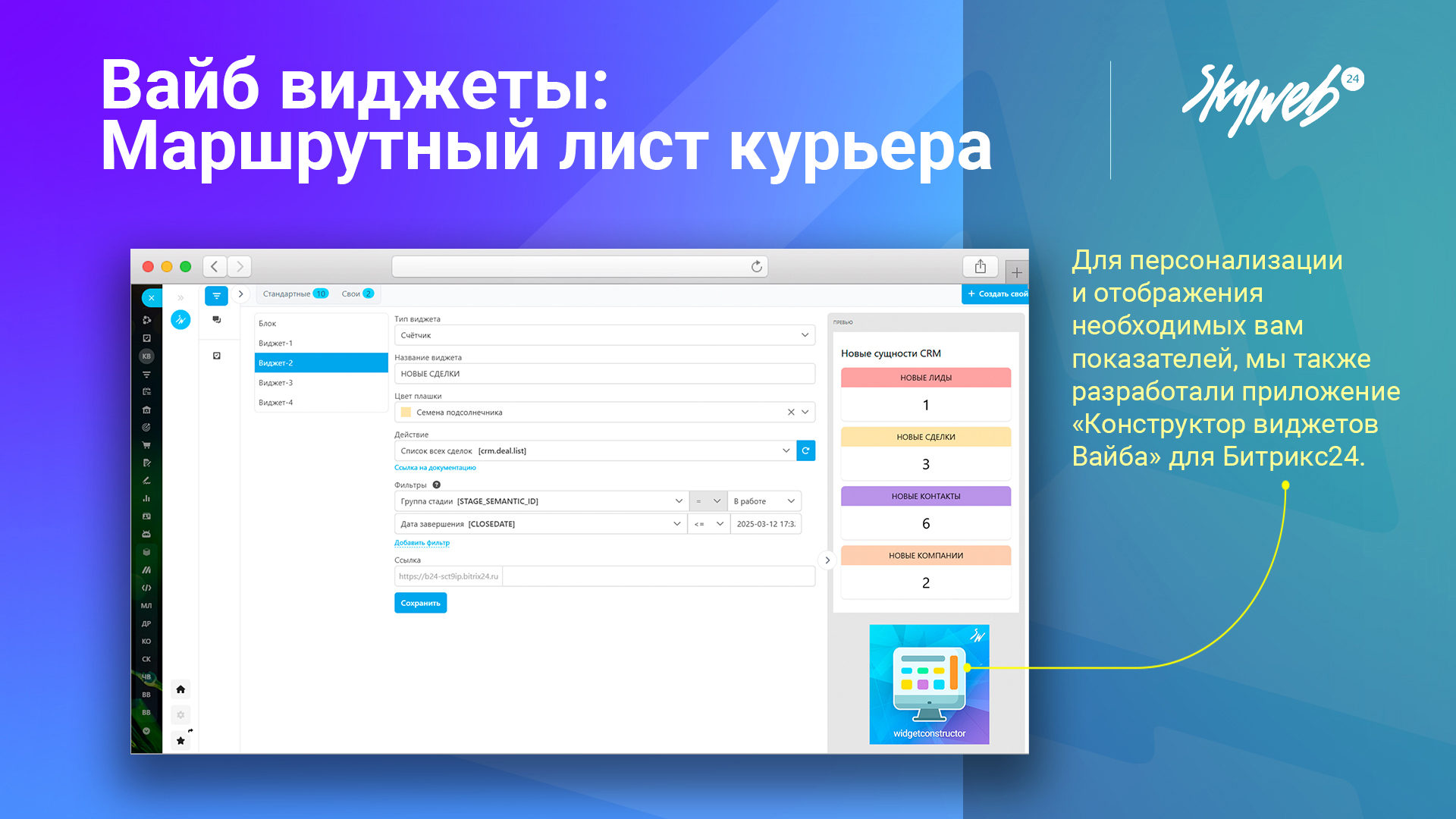 Виджеты из набора можно использовать для создания персонализированных виджетов с помощью «Конструктора виджетов Вайба».