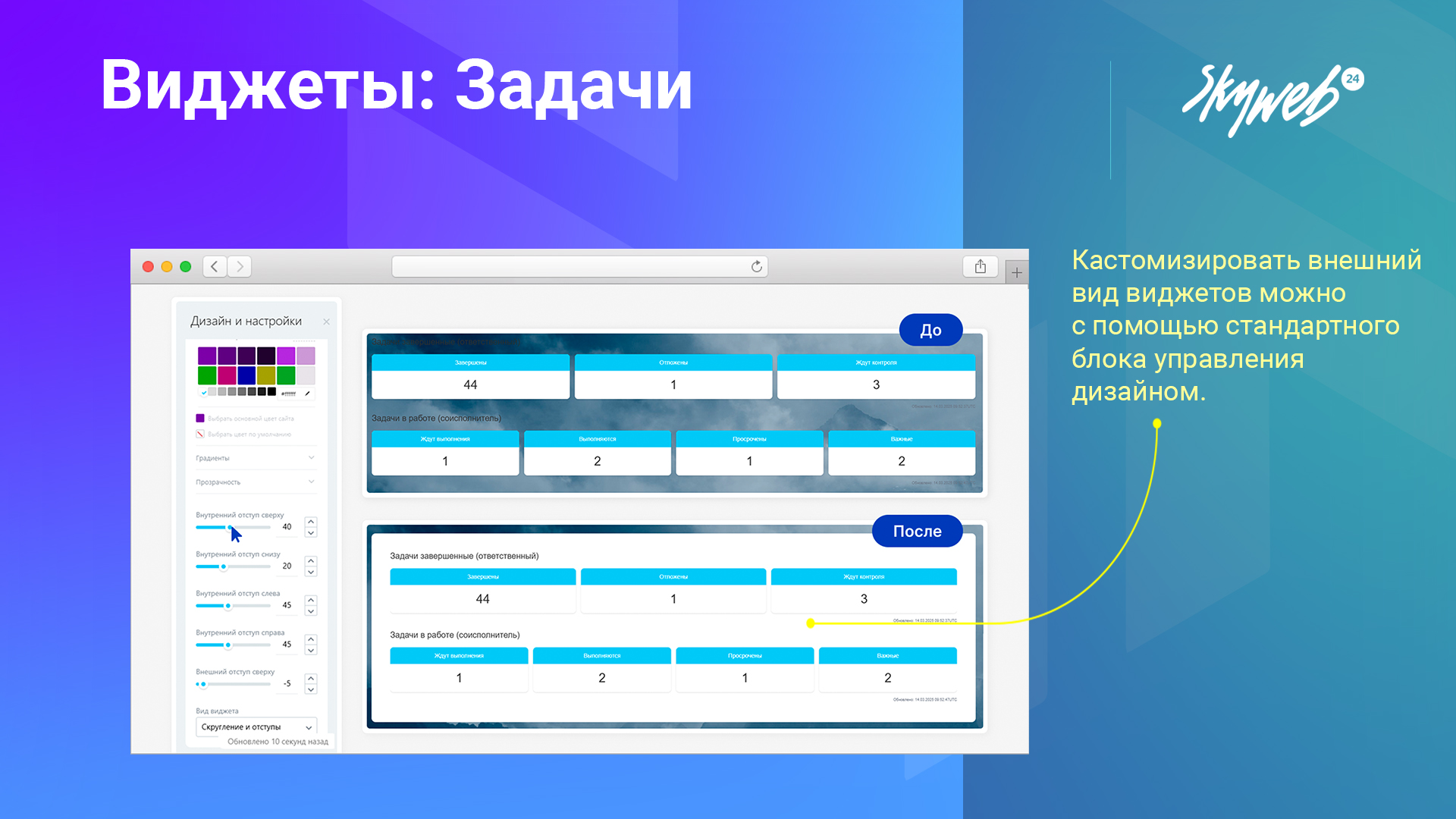 Виджеты из набора можно использовать для создания персонализированных виджетов с помощью «Конструктора виджетов».