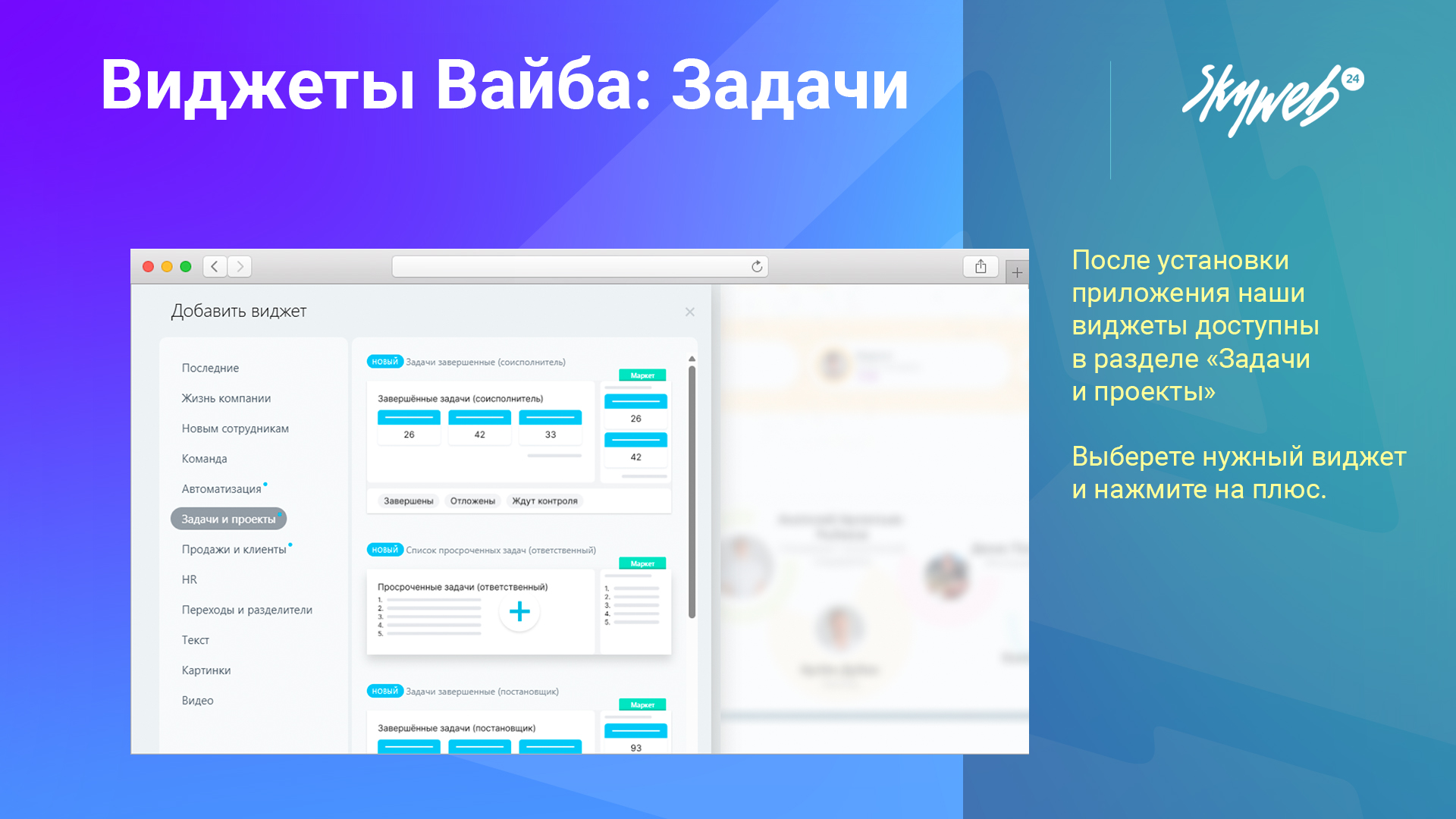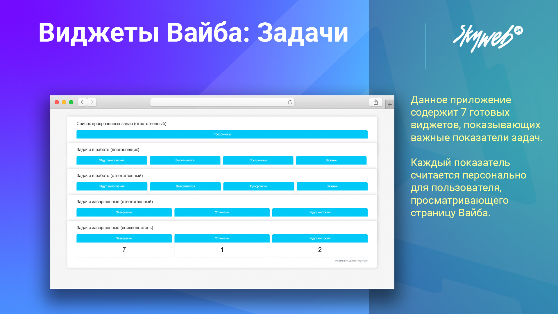 Наше приложение представляет собой набор готовых виджетов для главной страницы Битрикс24 (Вайб).