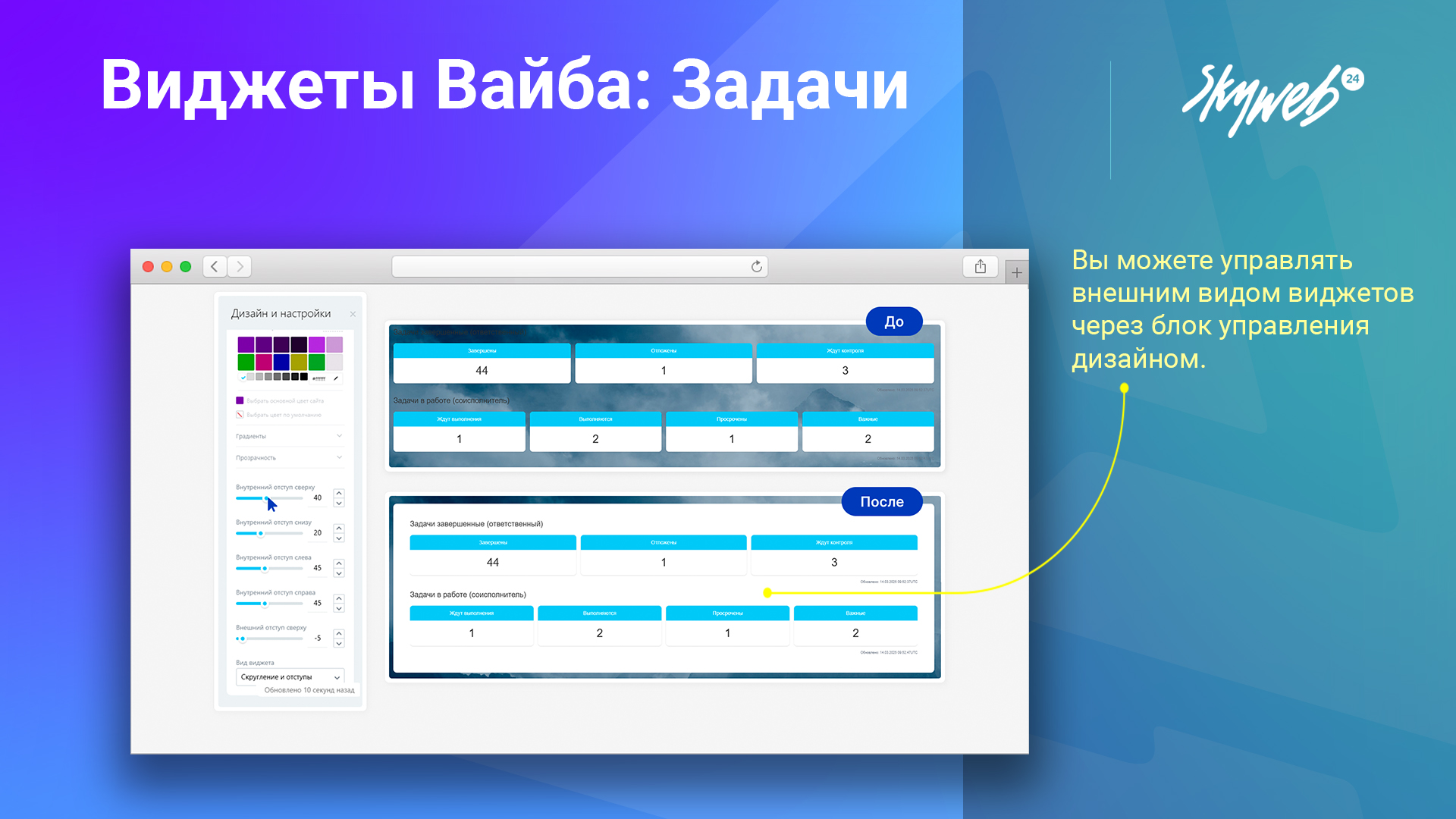 Виджеты из набора можно использовать для создания персонализированных виджетов с помощью «Конструктора виджетов Вайба».