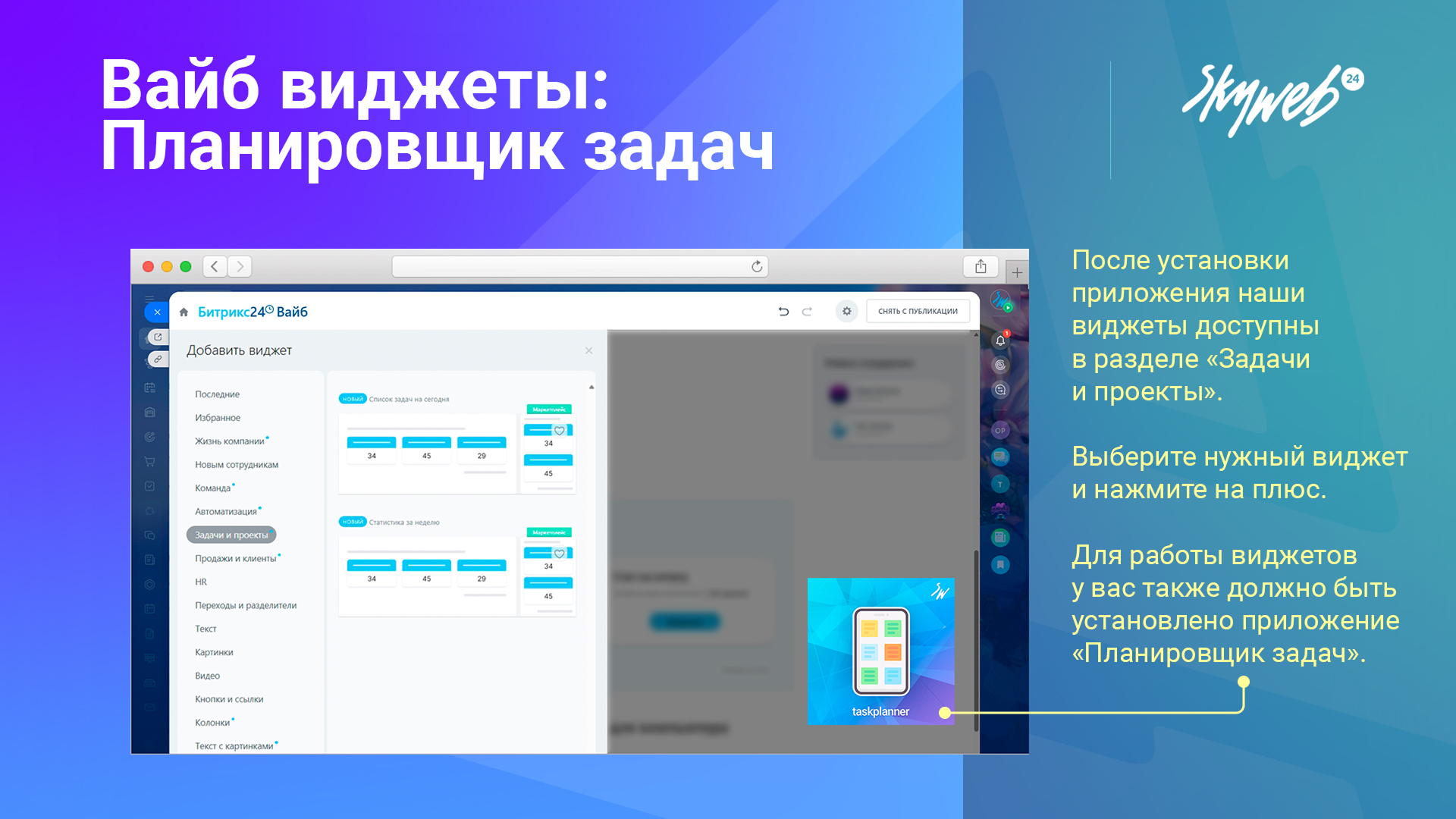 Виджеты из набора можно использовать для создания персонализированных виджетов с помощью «Конструктора виджетов Вайба».