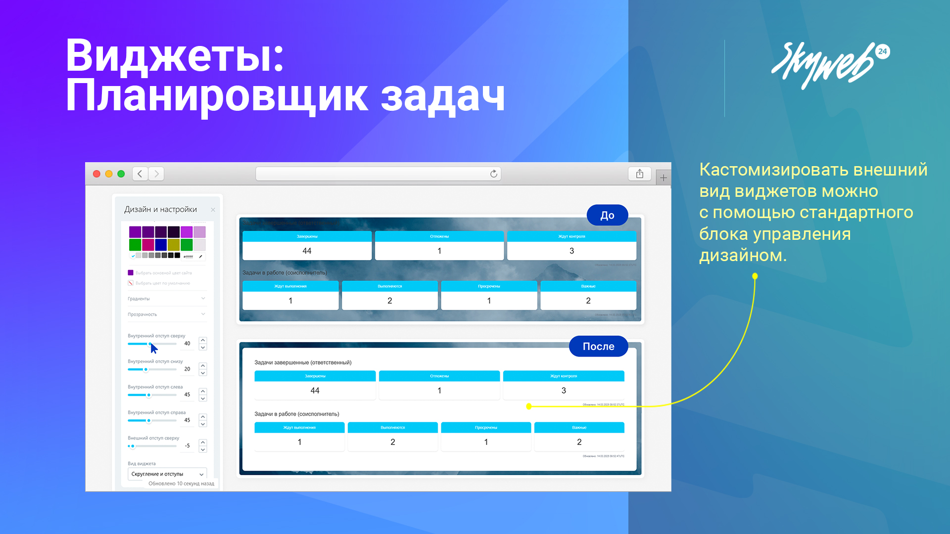 Виджеты из набора можно использовать для создания персонализированных виджетов с помощью «Конструктора виджетов».