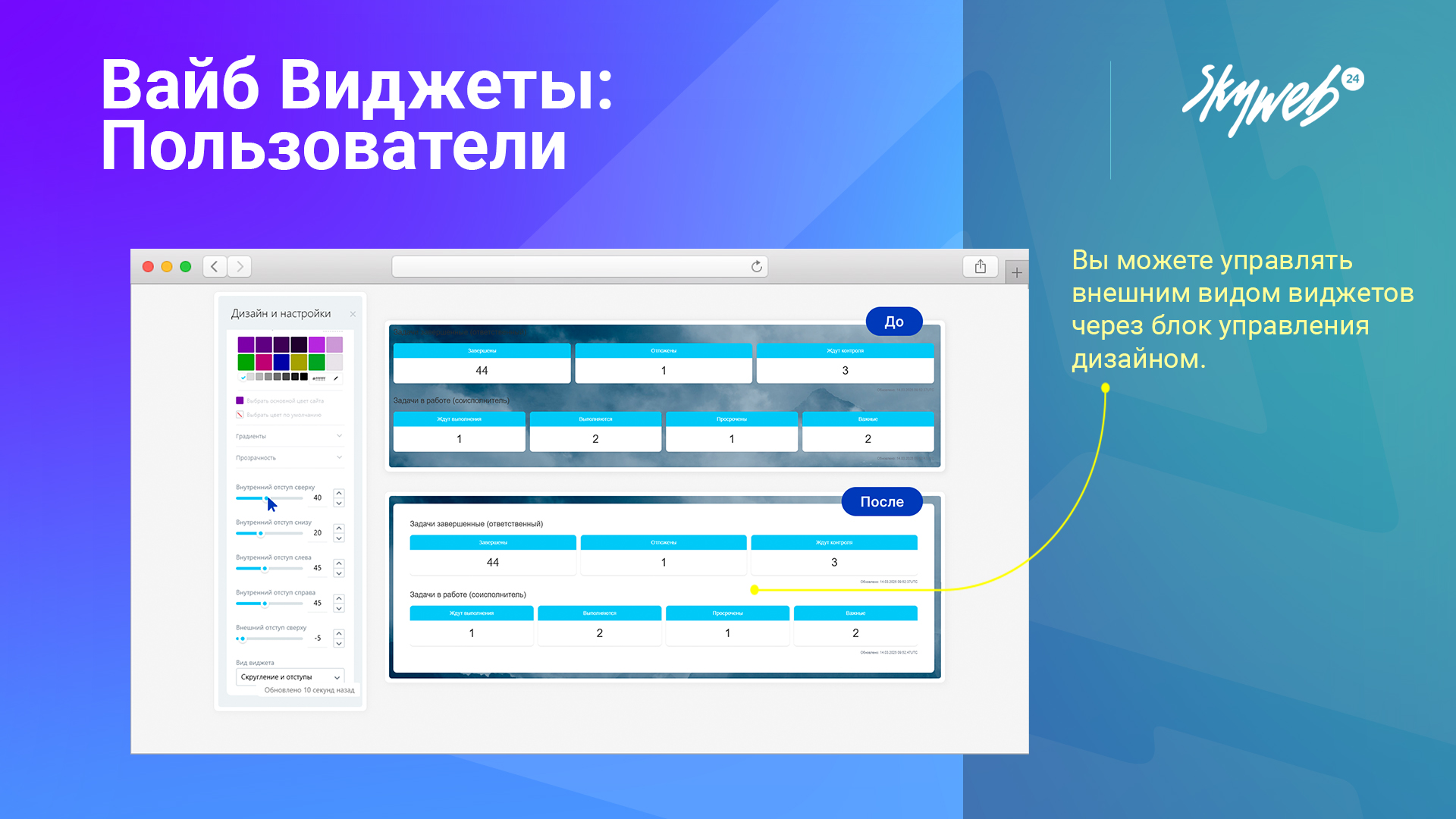 Виджеты из набора можно использовать для создания персонализированных виджетов с помощью «Конструктора виджетов Вайба».
