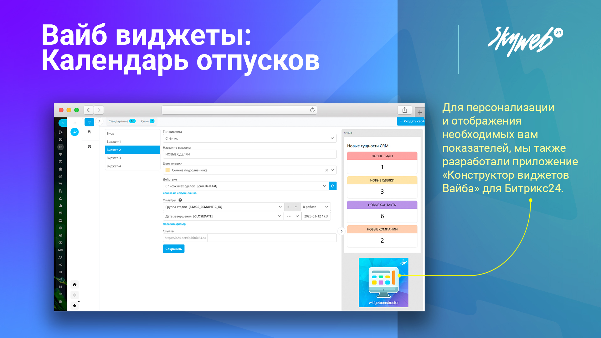 Готовые виджеты по CRM для главной страницы Битрикс24.Вайб