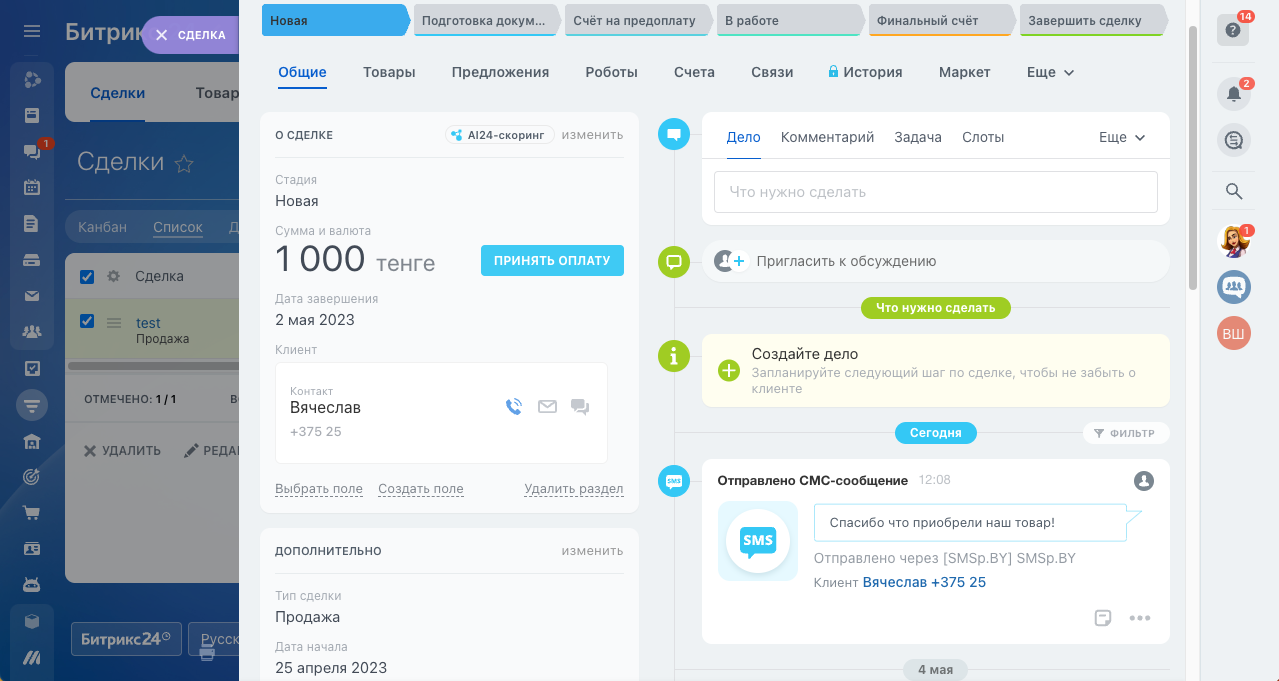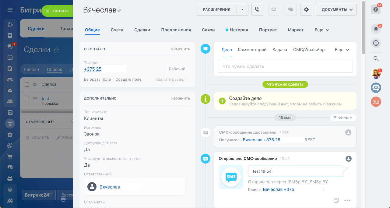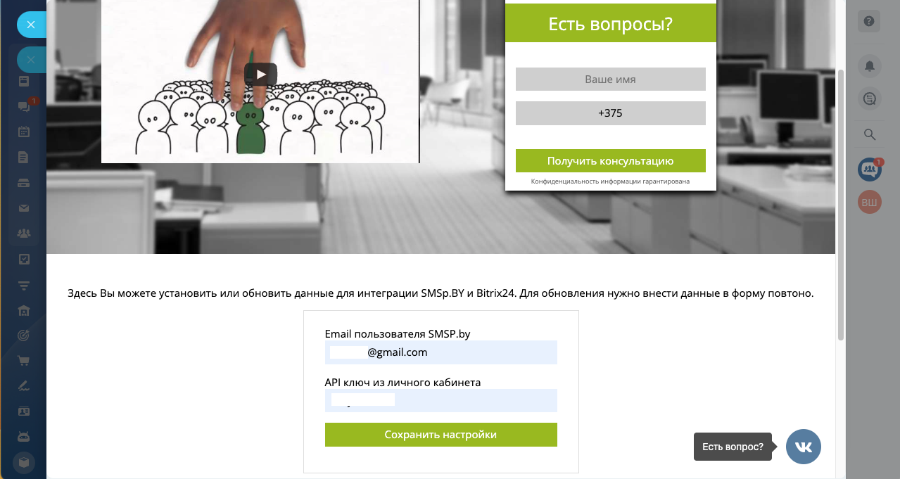 Приложение SMSp.BY позволяет отправлять SMS-уведомления Вашим контактам из Bitrix24. Это один из самых комфортных и дешевых способов рассылки в странах Беларуси и СНГ. Для настройки приложения требуется аккаунт на сайте SMSp.BY