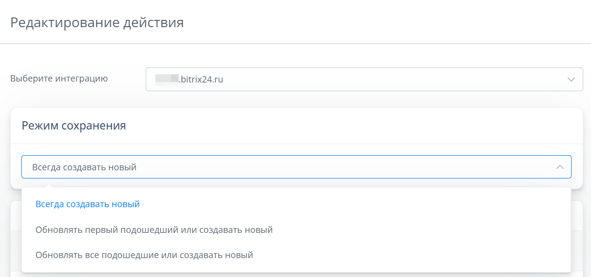 3. Нажмите «Добавить обработчик - Добавить действие - Битрикс24 - Сохранить лид/Сохранить контакт/Сохранить сделку/Сохранить компанию»