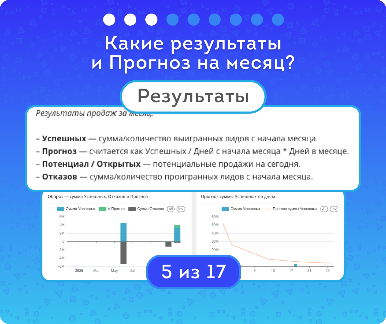 Отвечает на вопрос: какие итоги обработки лидов и Прогноз продаж до конца месяца? Анализируются: