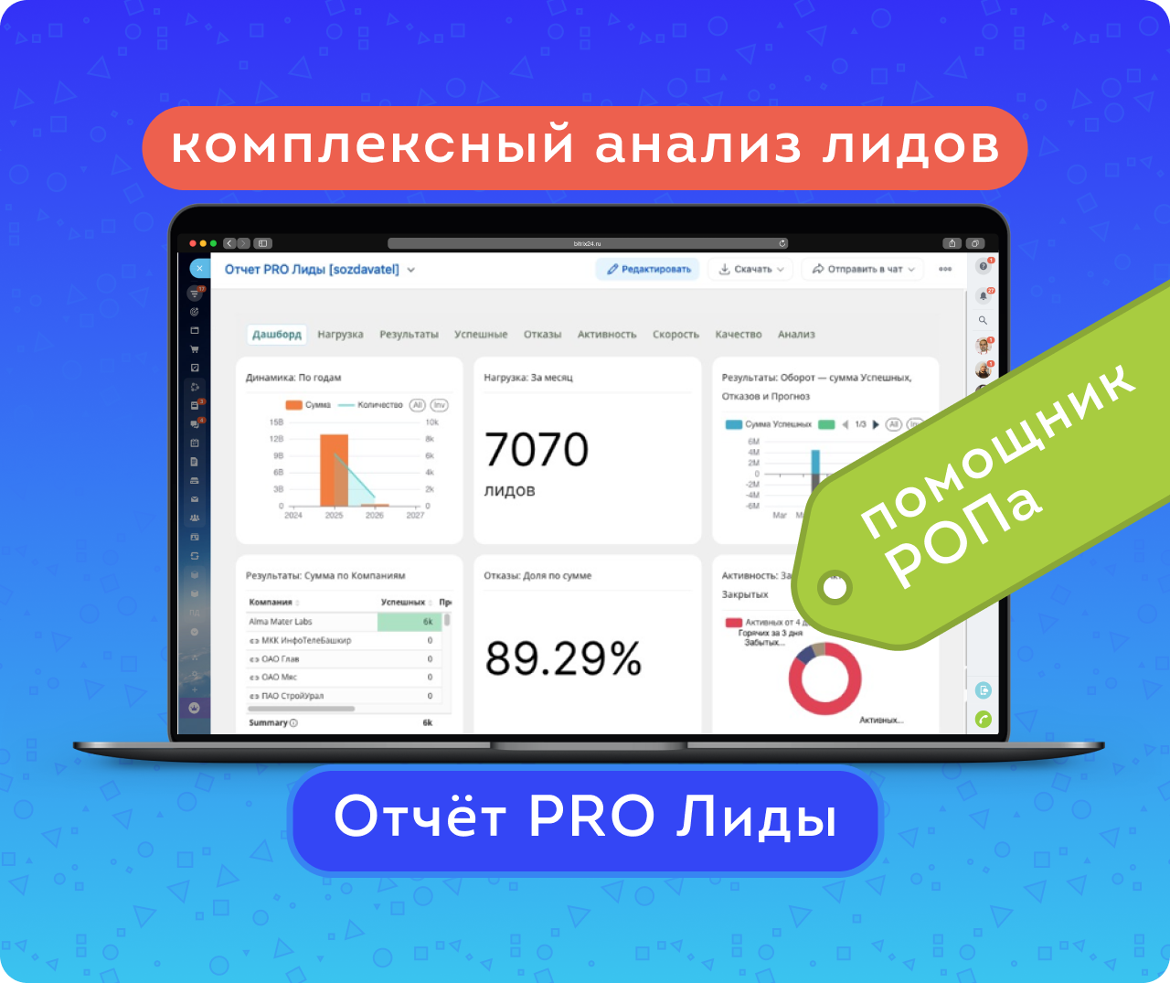 Отчёт PRO Лиды предназначен для собственников и руководителей отделов продаж, которым важно: