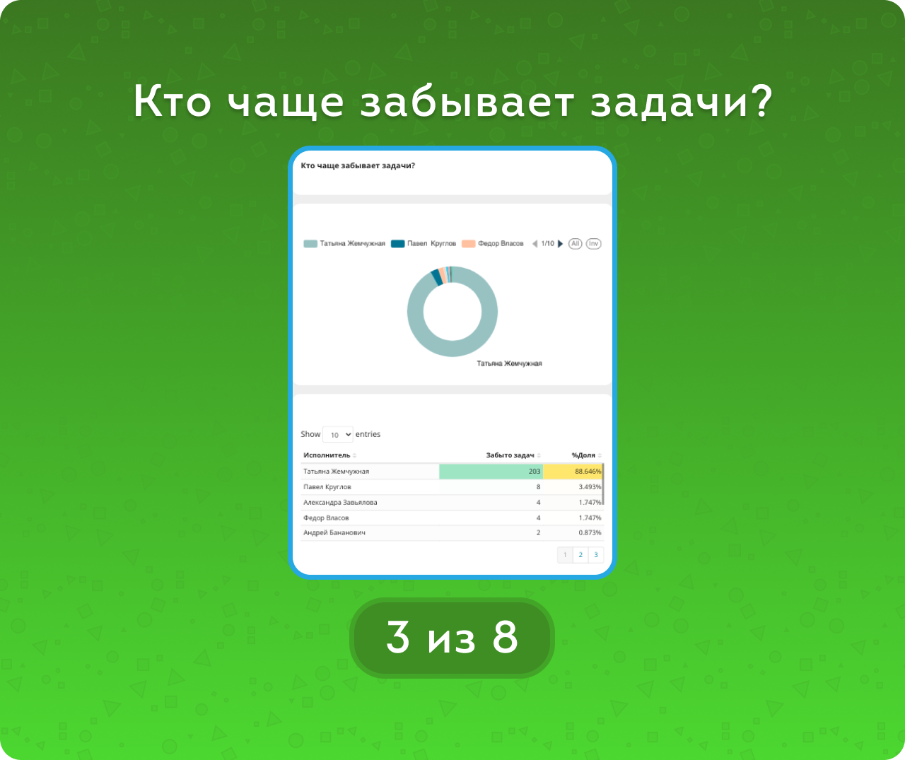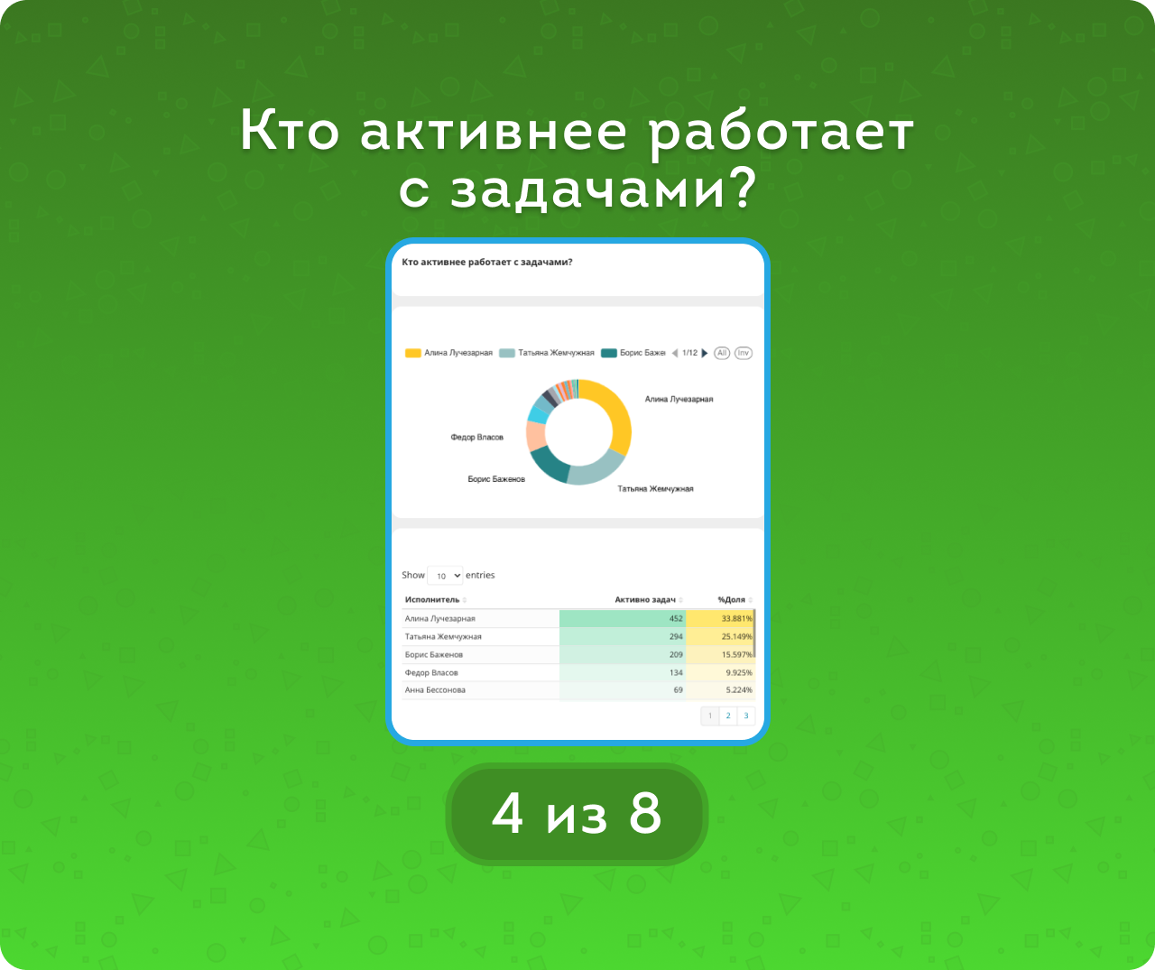 Отвечает на вопрос: «Кто активно выполняет, а кто забывает задачи?»