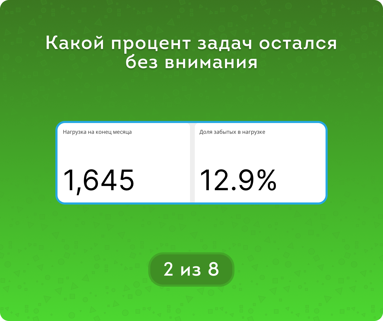 Нагрузка на конец месяца – все незавершенные задачи, а доля забытых среди них – процент тех, которые весь месяц никак не менялись.
