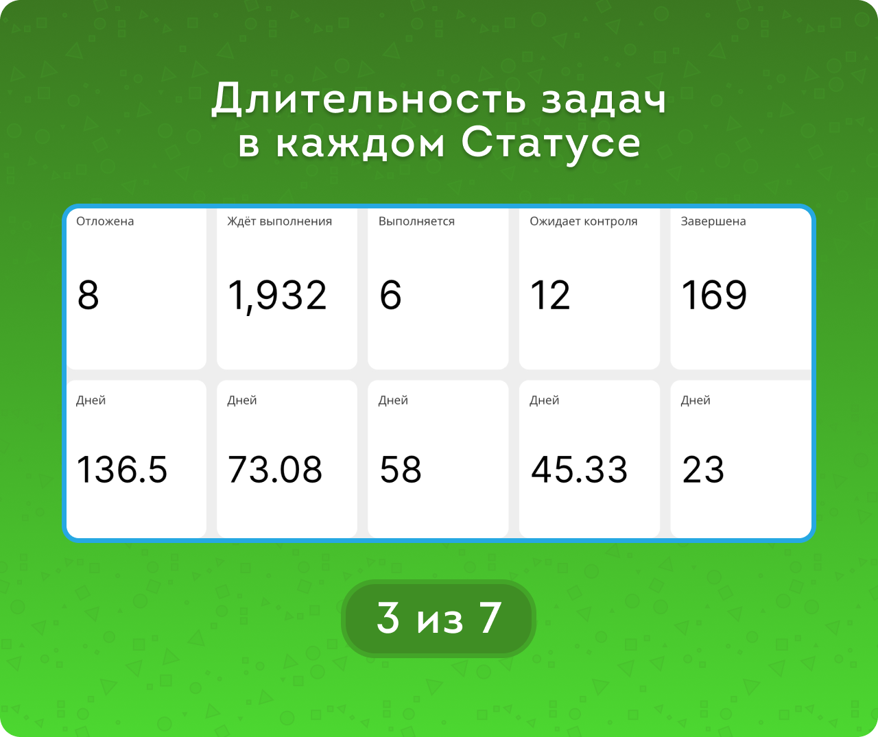 BI-отчет Задачи. Статусы и длительность – инструмент для оценки длительности выполнения задач на всех этапах работы.