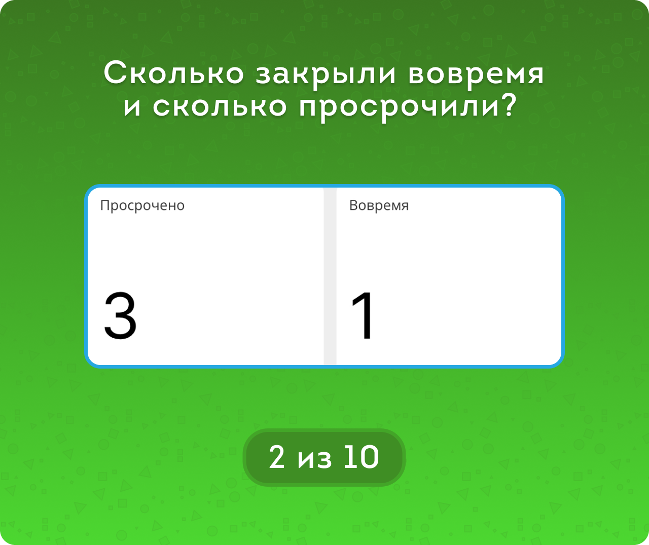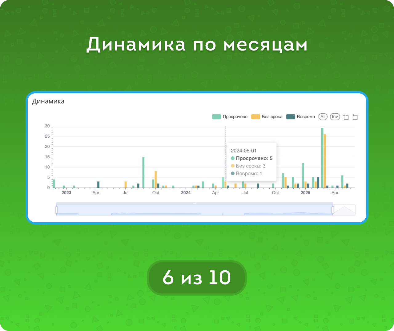 • и метрикам Сроков (Без срока/Просроченные/Вовремя).
