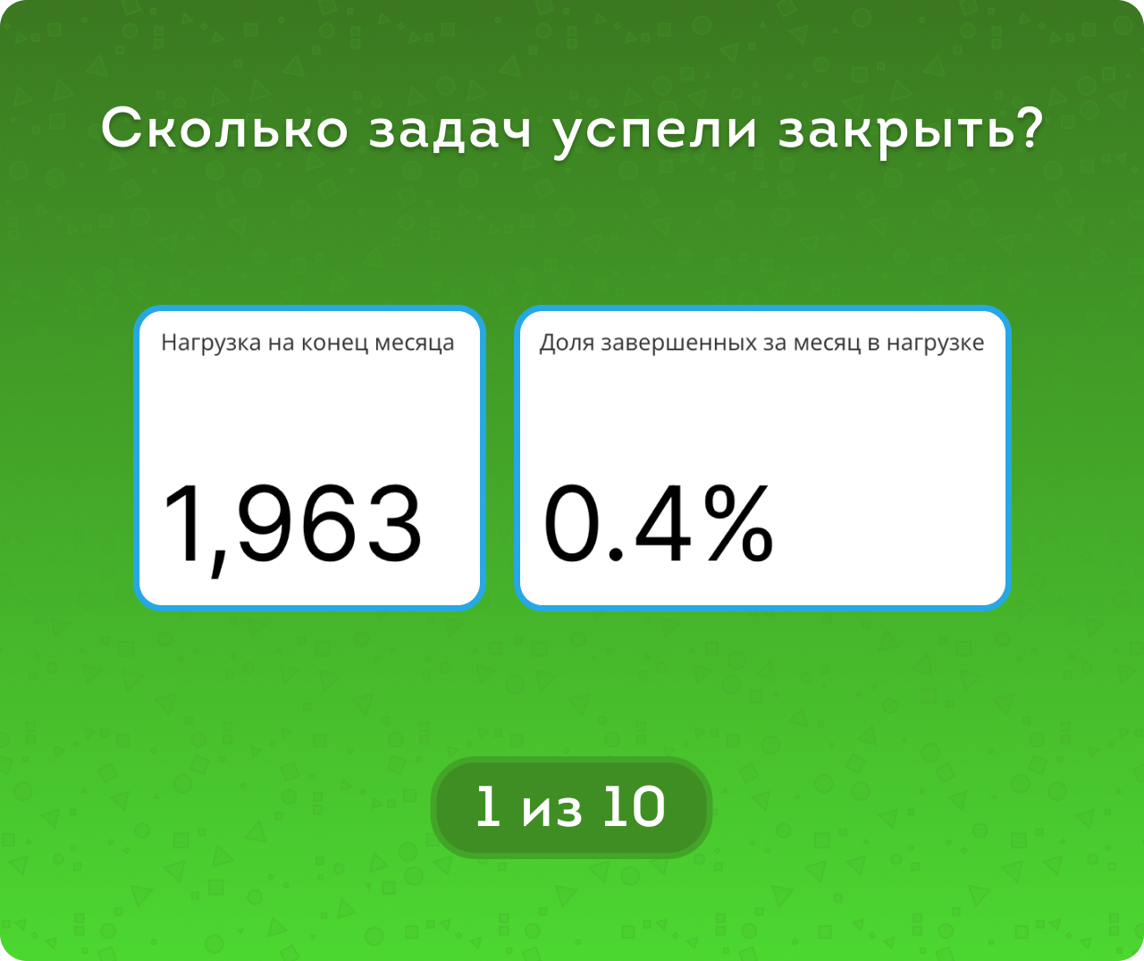 Нагрузка на конец месяца – все незакрытые задачи, а доля завершенных среди них – процент тех, которые удалось закрыть в этом месяце.
