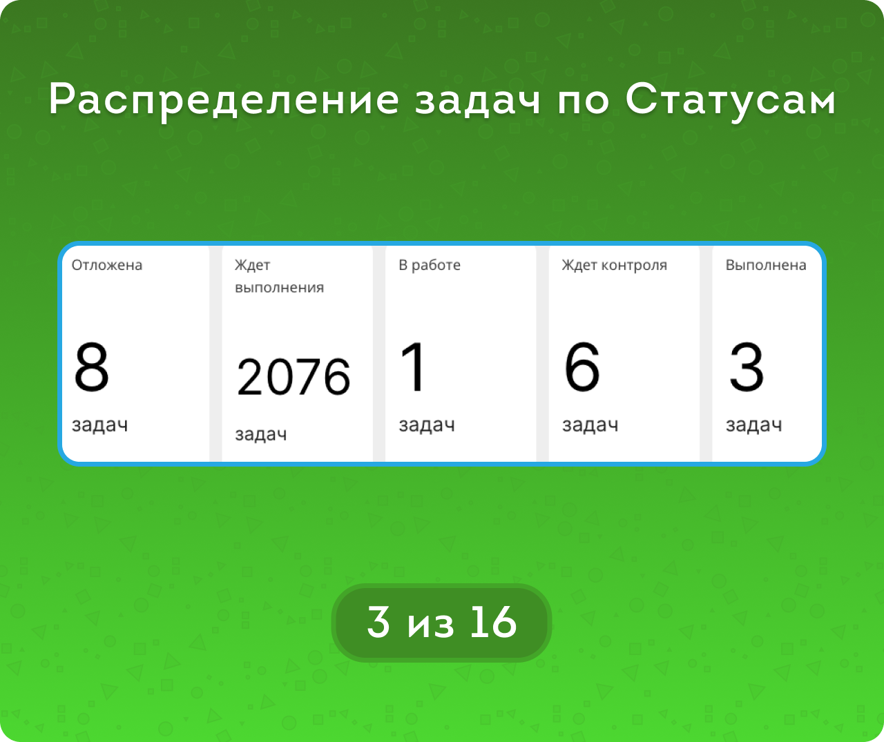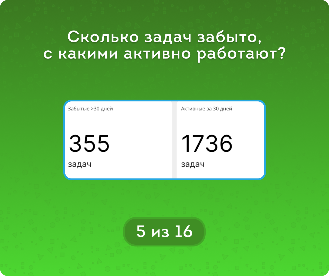 • метрикам Статусов и метрикам Активности (Активные / Забытые / Завершенные),