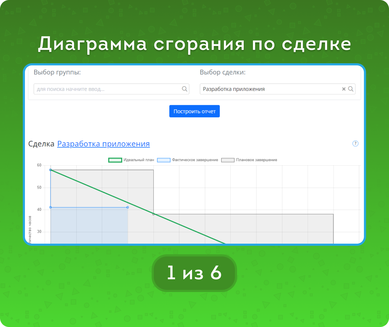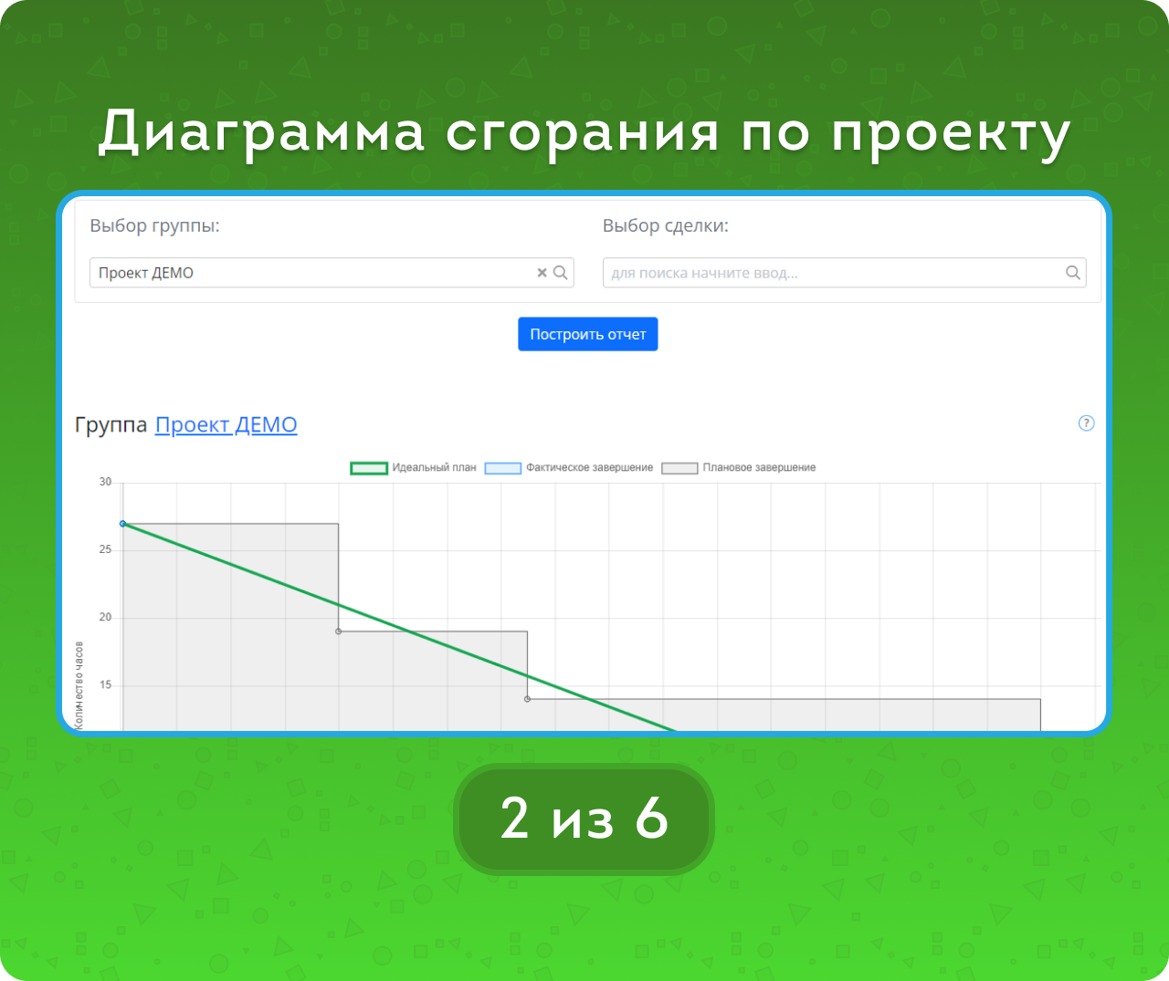 Визуализация выполнения работ в Группах, Проектах и Сделках в виде наглядных графиков.