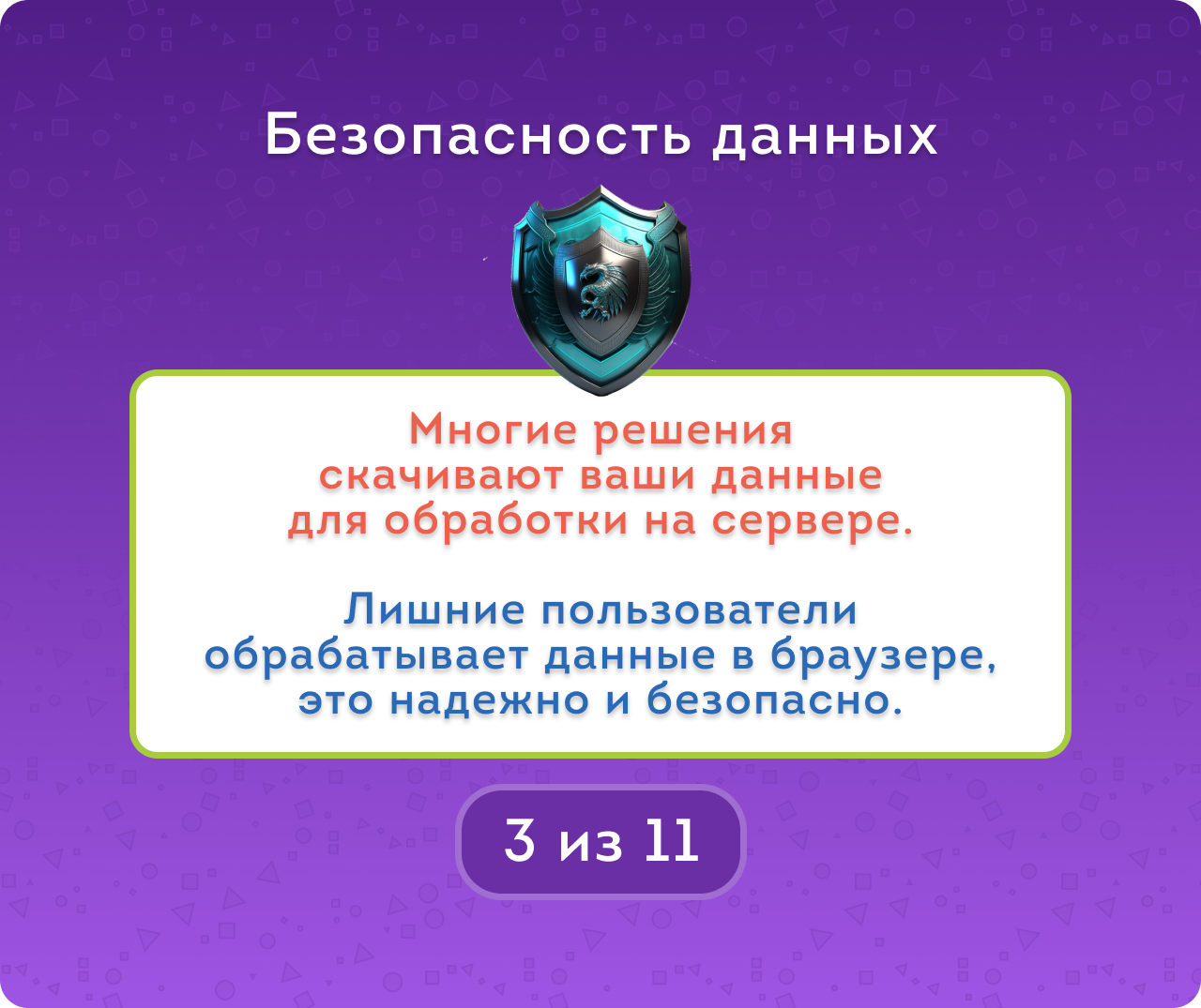 2. Данные обрабатываются только в вашем браузере и, в отличие от аналогичных приложений, не передаются на сторонние сервера.