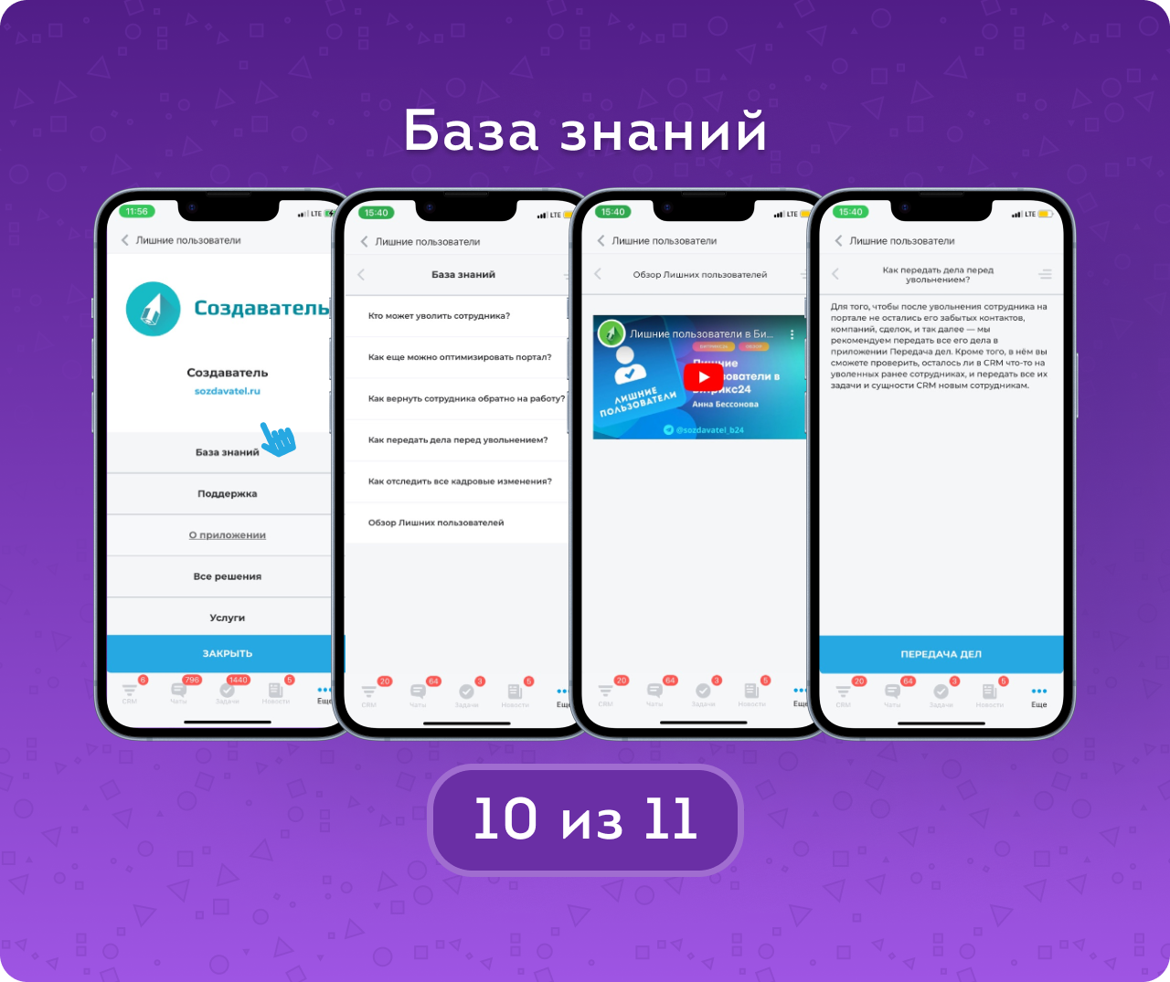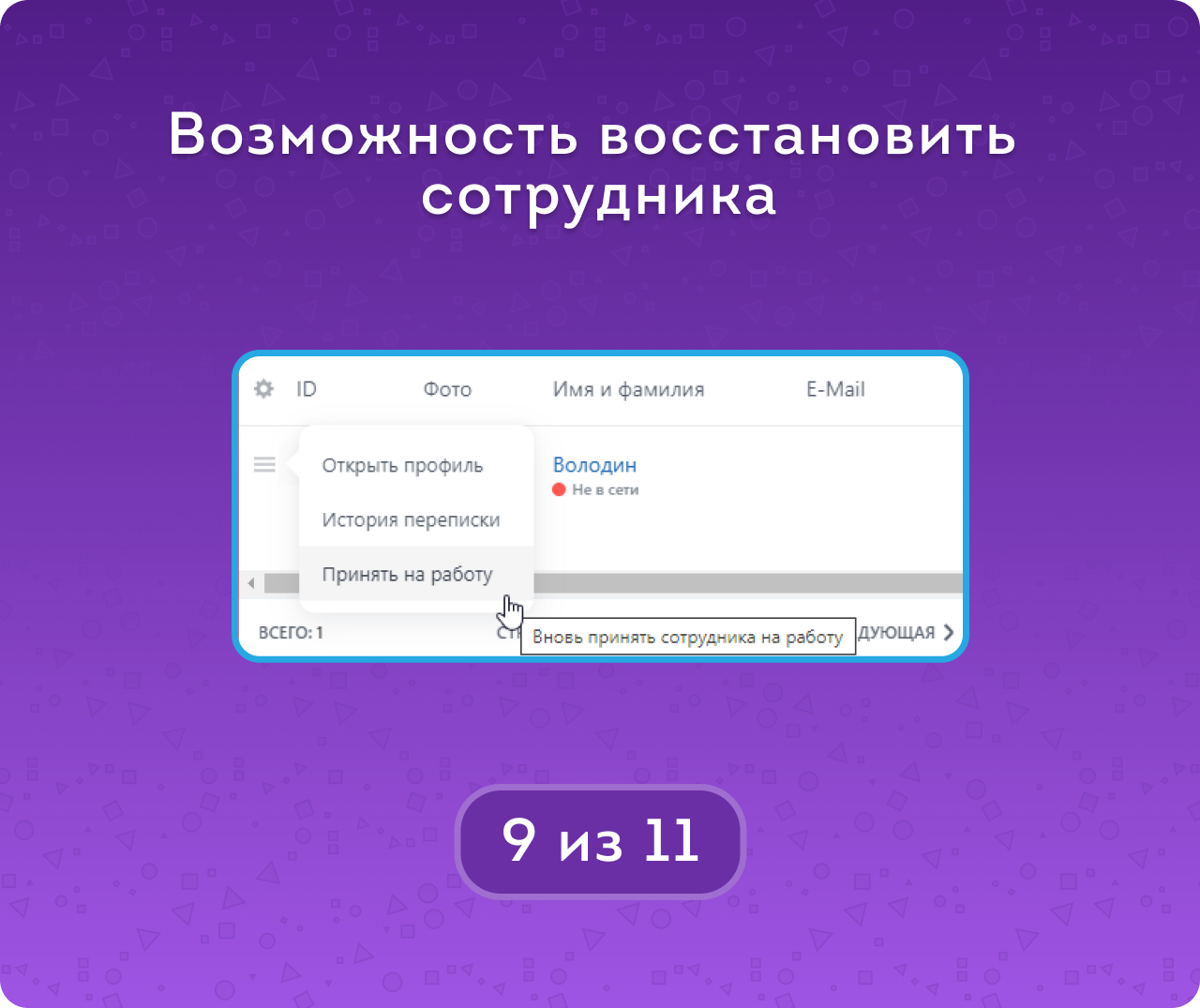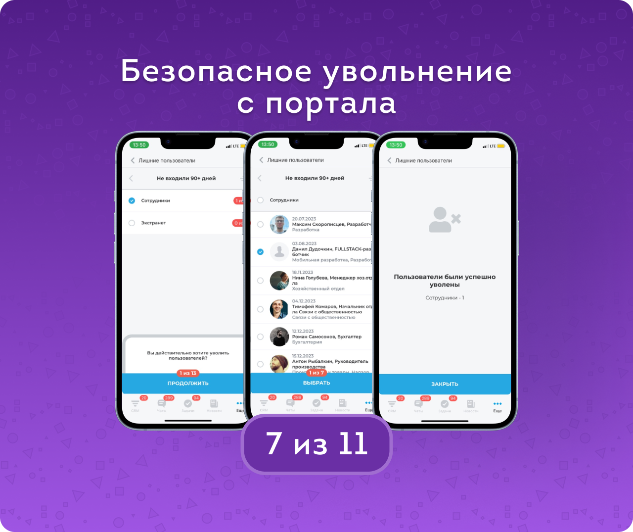 Приложение доступно как на десктопе, так и на мобильной версии, так что вы можете управлять пользователями независимо от местоположения. Лишние пользователи помогут оптимизировать ресурсы, поддерживать портал в актуальном состоянии и обеспечивать место для новых сотрудников. А для того, чтобы в порядке была и клиентская база тоже — попробуйте приложение Умная привязка контактов к компании.