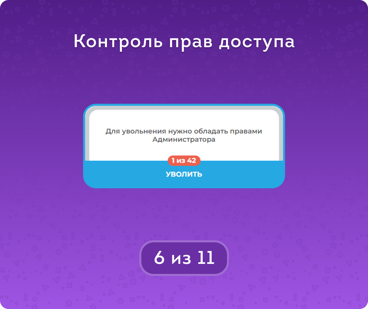 1. Учитываются права текущего пользователя. Только администратор портала может уволить сотрудника. Остальным доступен просмотр информации.