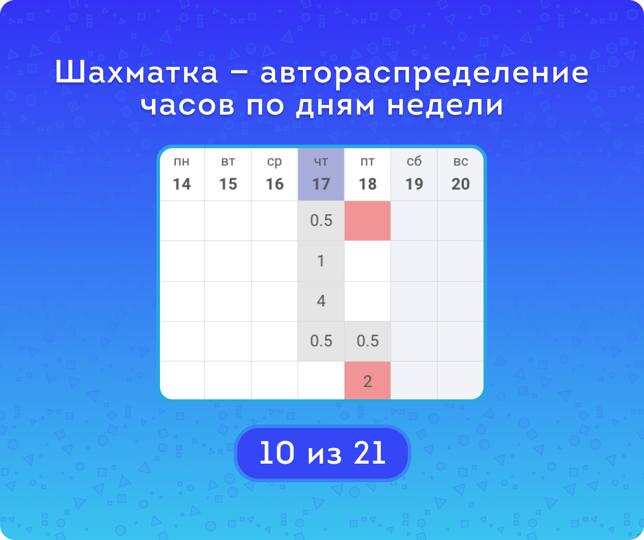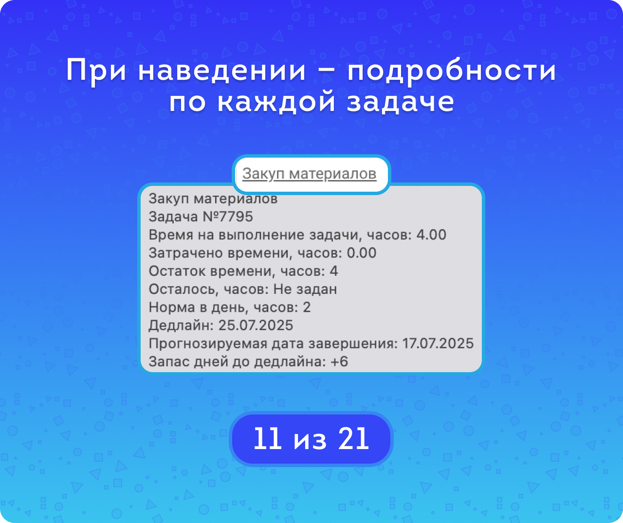 Норма часов в день берётся из общей таблицы, её можно изменить. Это позволяет распределить задачи по дням так, чтобы суммарная нагрузка не превышала установленную норму. Например, руководитель может запланировать 2 часа на одну задачу и 3 часа на другую, чтобы сотрудник выполнял их по очереди в течение дня.