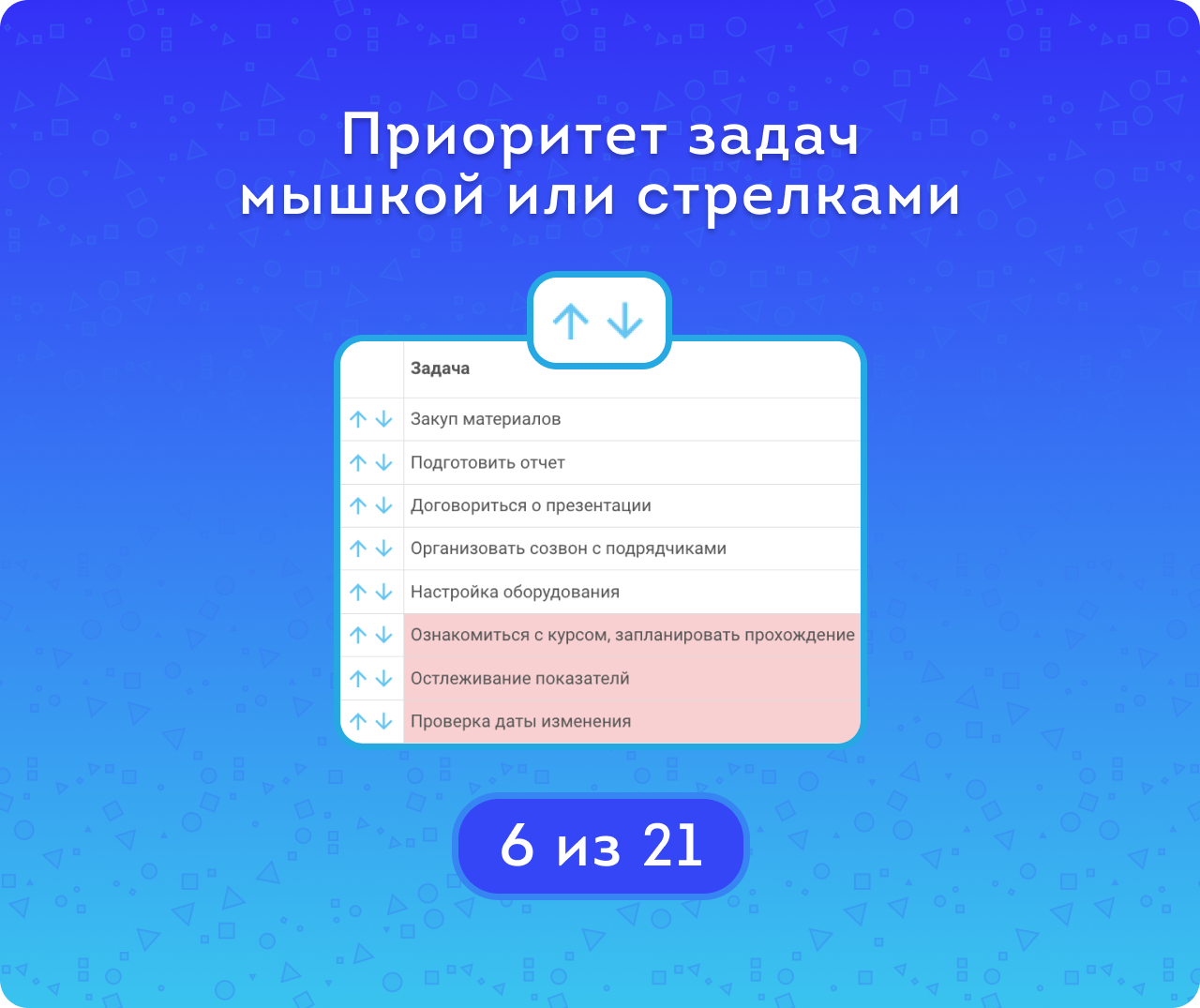 Планировщик задач — инструмент для эффективного управления рабочим временем. Руководители планируют очередность задач и контролируют их выполнение, а сотрудники сразу видят, что нужно сделать в первую очередь. Всё необходимое — в одном месте!