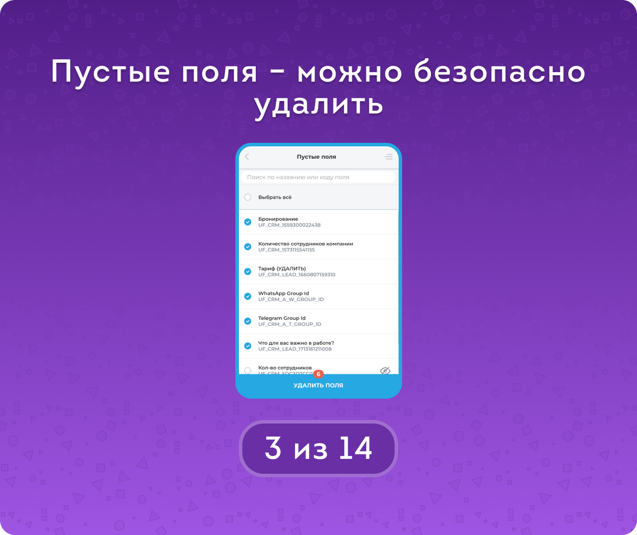 Лишние поля CRM — инструмент, который поможет поддерживать порядок в карточках Лидов, Сделок, Контактов и Компаний. Если CRM используется много лет — в ней могли накопиться сотни полей. Но все ли они действительно нужны и активно используются?