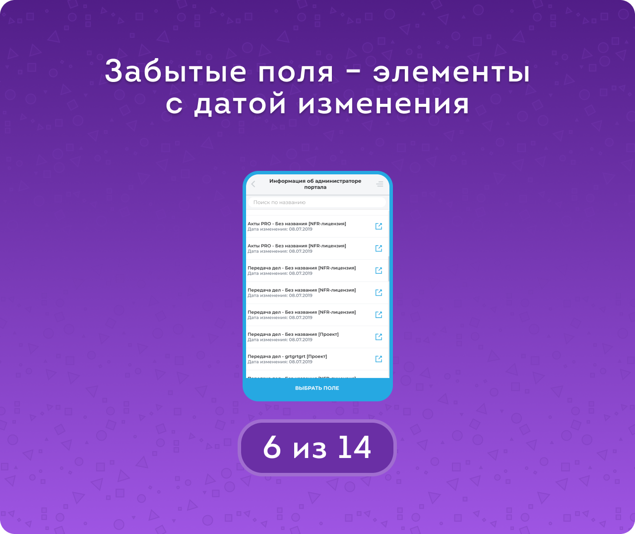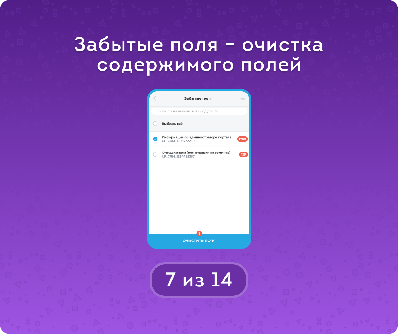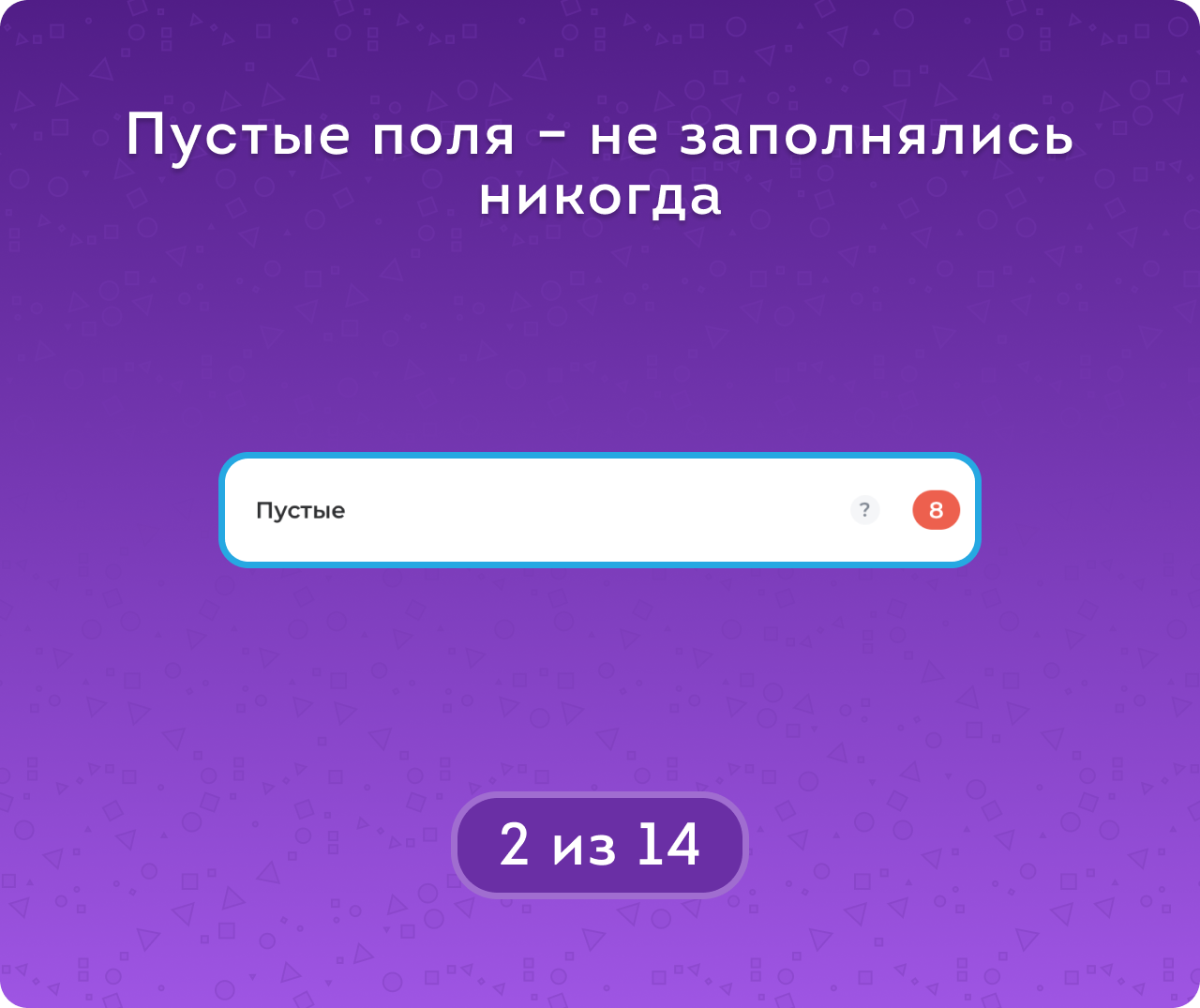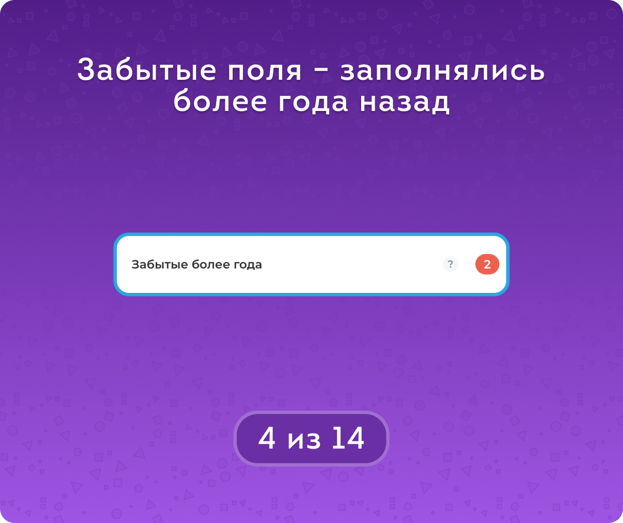Забытые поля — те, которые не заполнялись более года. Для них приложение отображает количество сущностей, в которых оно заполнено, и даёт ссылки на эти сущности. Так можно быстро понять, насколько актуальна информация и нужны ли такие поля сегодня. После очищения забытых полей они становятся «пустыми» и их также можно безопасно удалить.