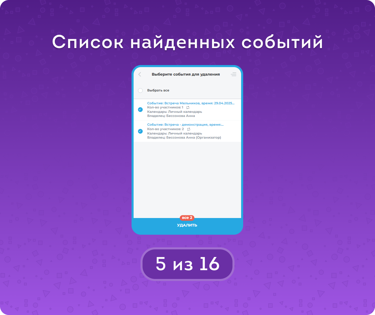 Это позволяет принимать взвешенные решения и избежать случайного удаления важных встреч. Логика очистки следующая: