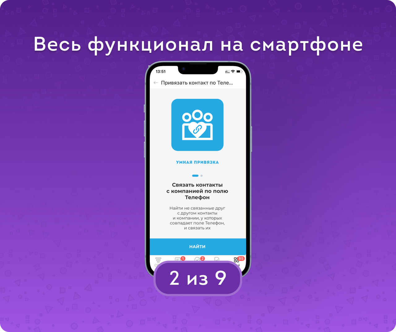 Привязать контакт по Телефону — это приложение, которое поможет связать Контакты с нужными Компаниями. Является логическим продолжением решения Сегментация клиентов и частью комплекса Умная привязка контактов к компании. Разработано в рамках философии учебника «Клиенты в порядке».