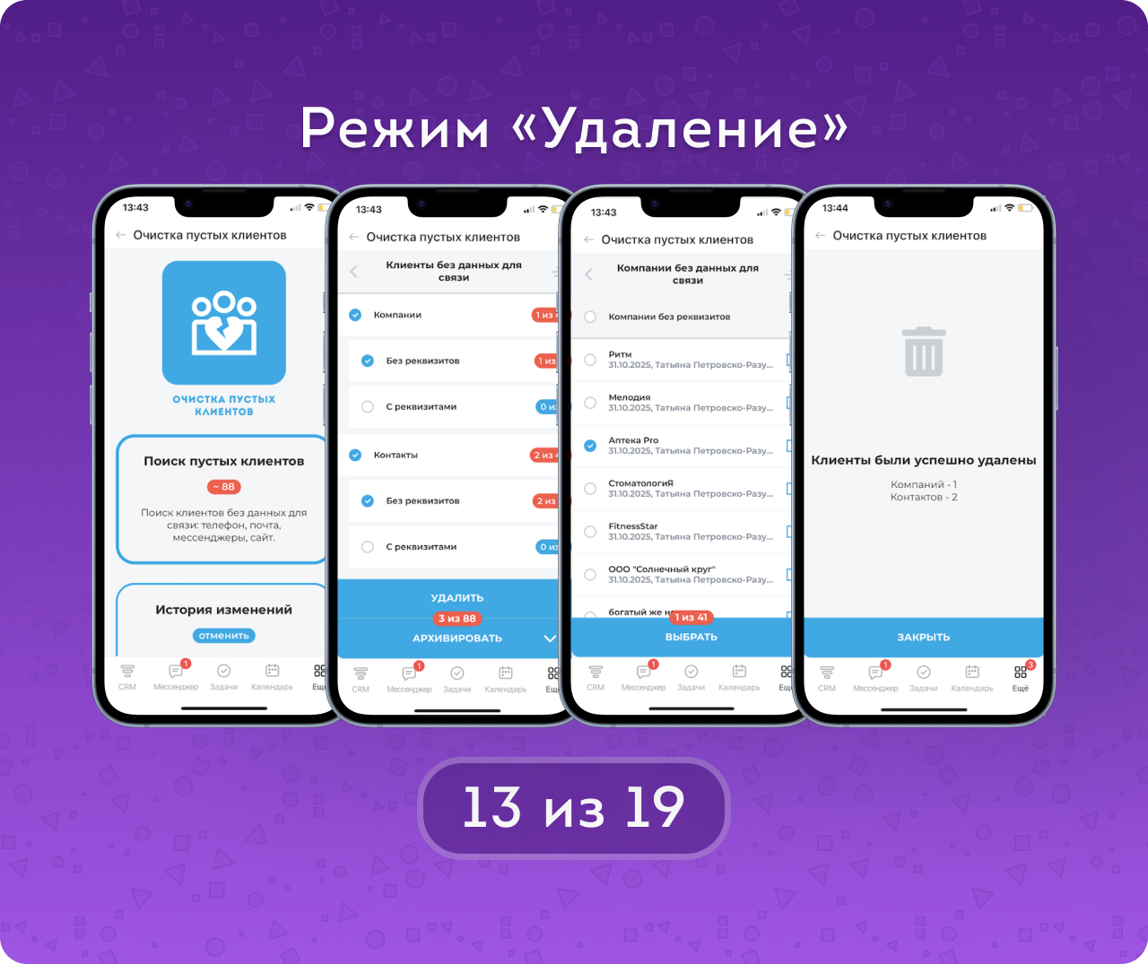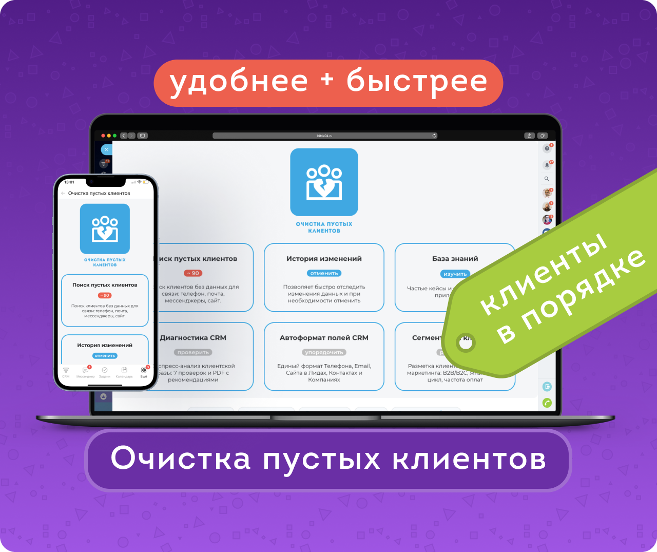 Почистив клиентскую базу, вы обеспечите достоверность данных, освободите место на Диске компании, упростите жизнь сотрудникам, а также повысите качество общения с клиентами!