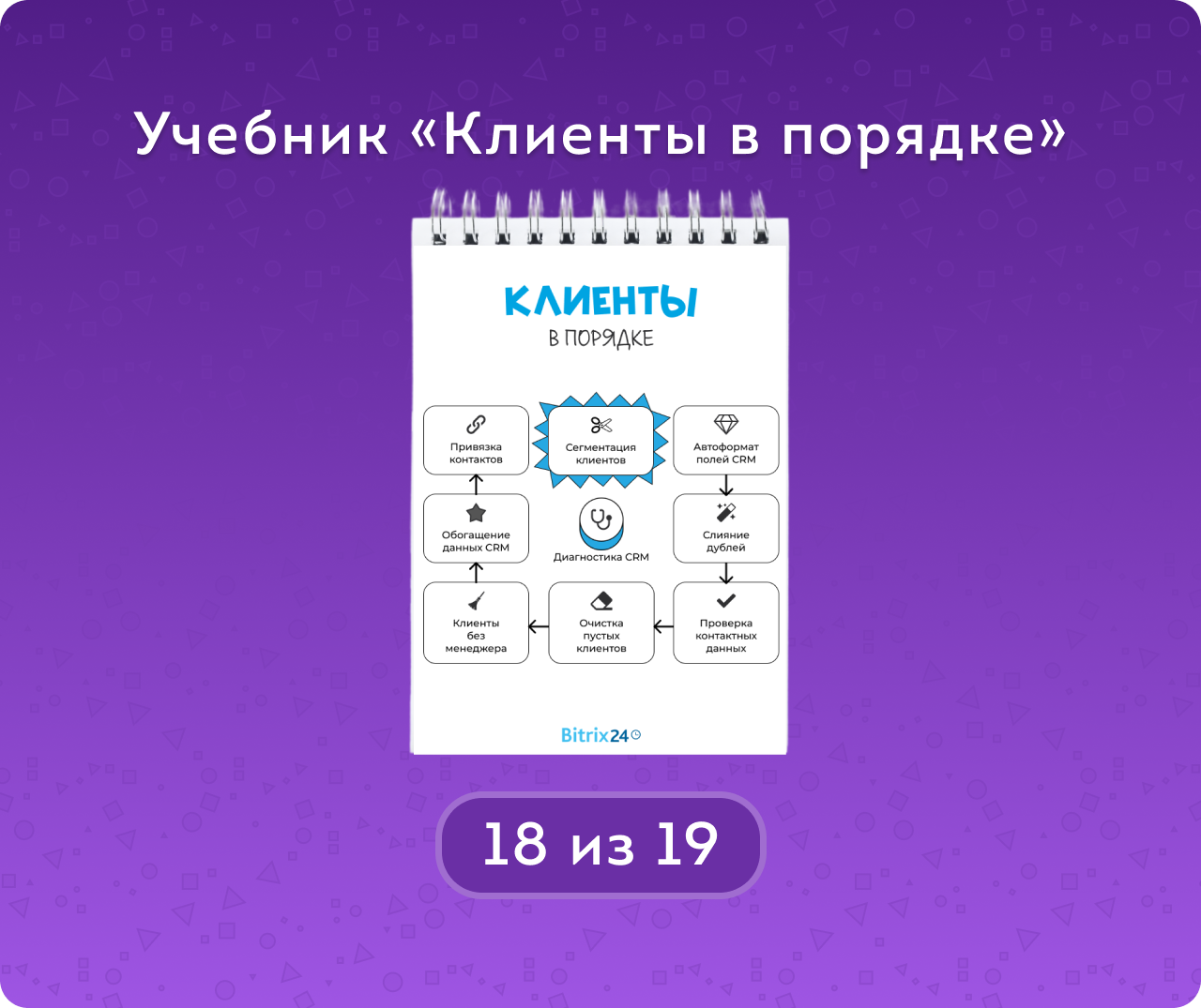 Для того, чтобы проводить полноценный анализ, планировать маркетинг и строить отчетность по Клиентам — данные по контактам и компаниям должны быть актуализированы. Сегментация клиентов позволит выделить те категории клиентов, которым нужно внимание, и при этом убрать лишние, пустые сущности (которые, так или иначе, копятся на любом портале).