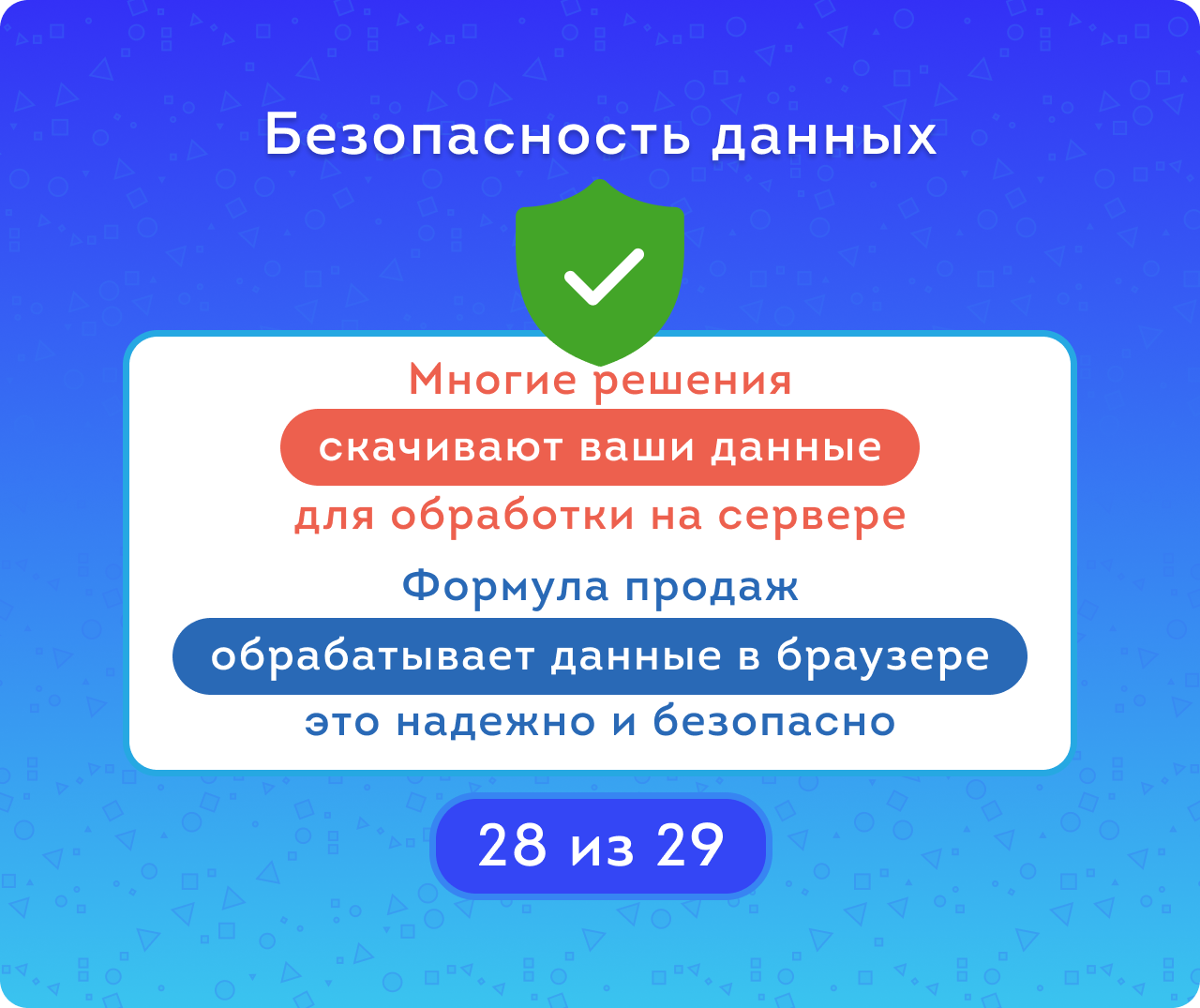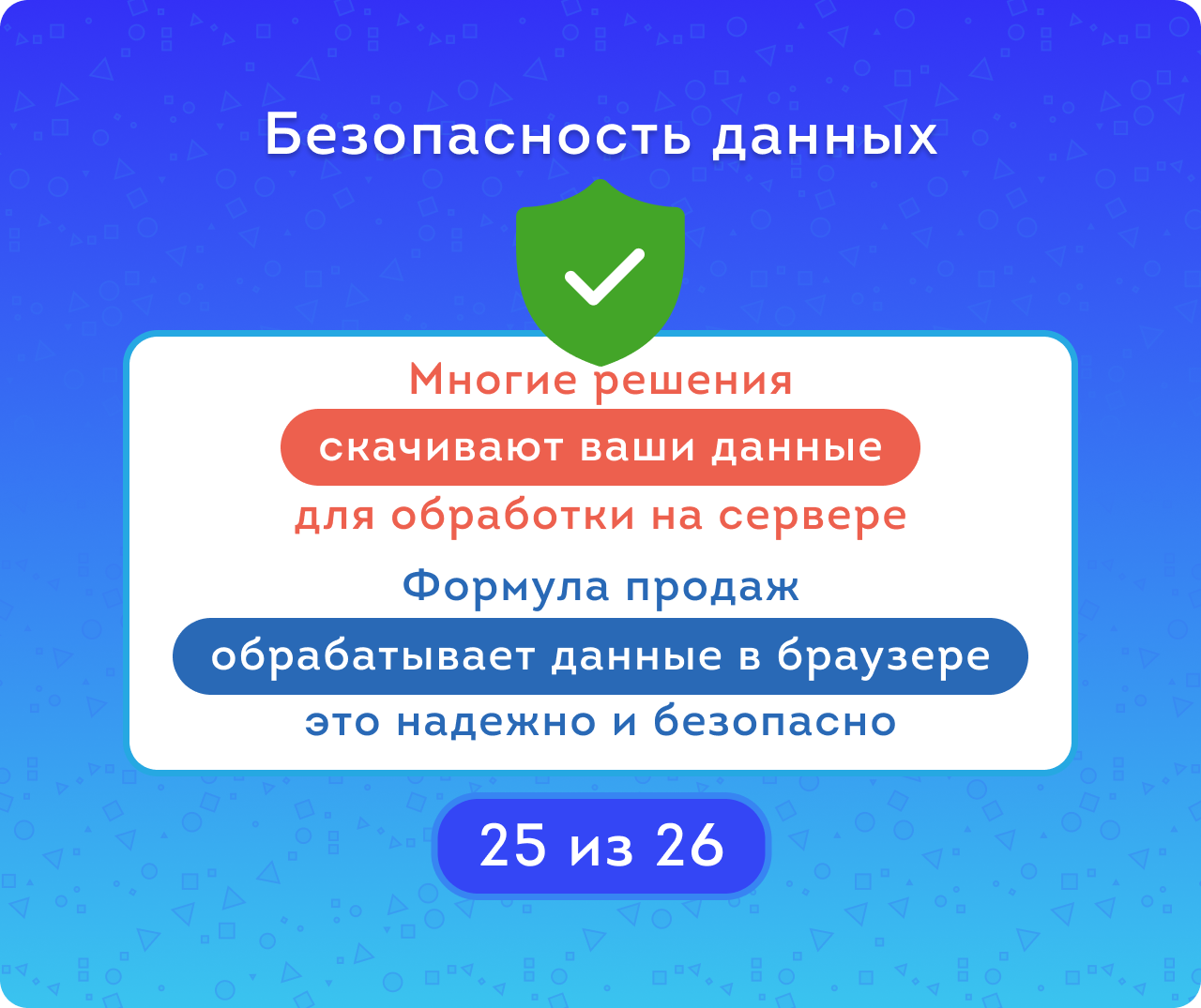 Локальная (браузерная) обработка данных, без передачи на сторонние сервера.