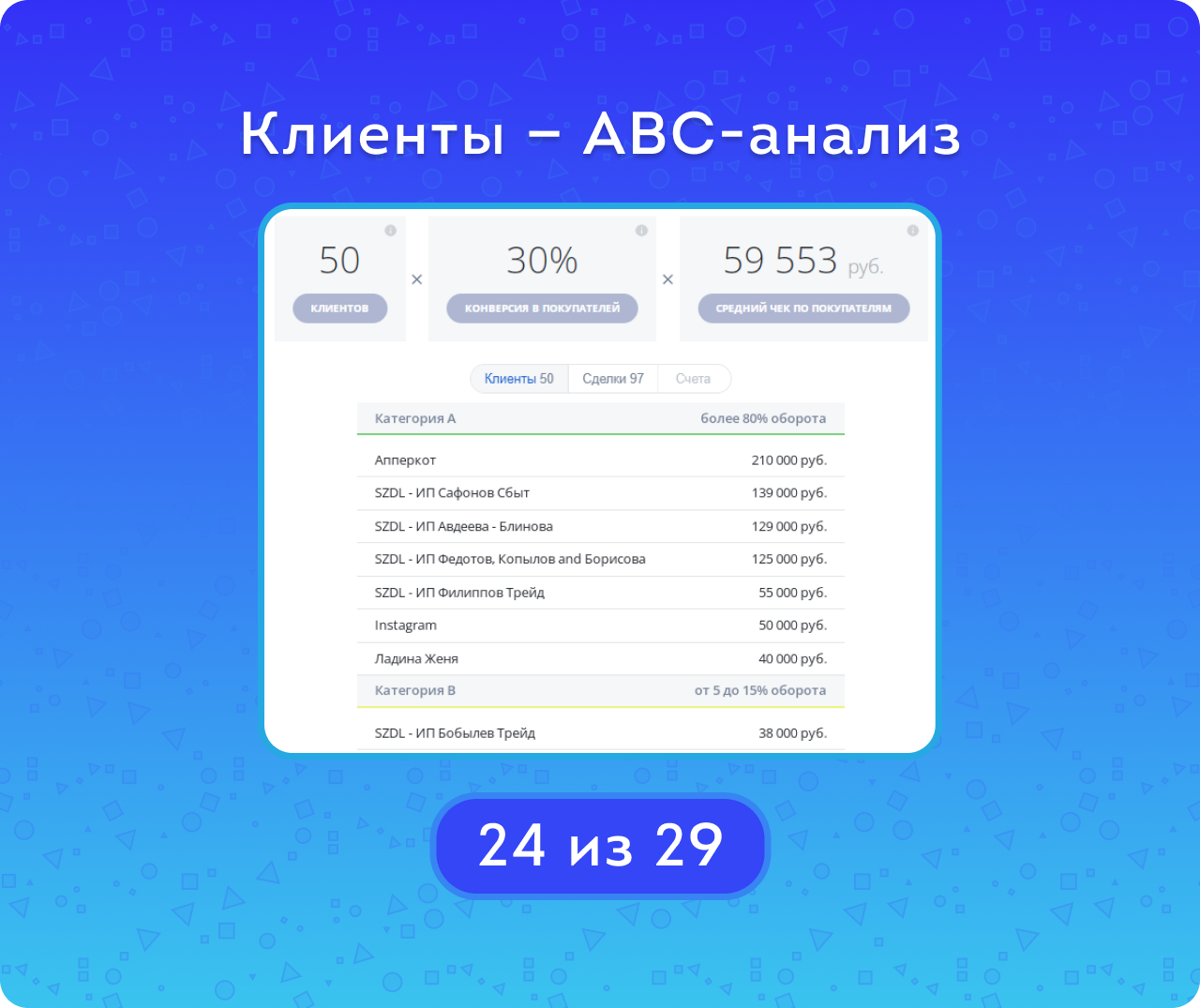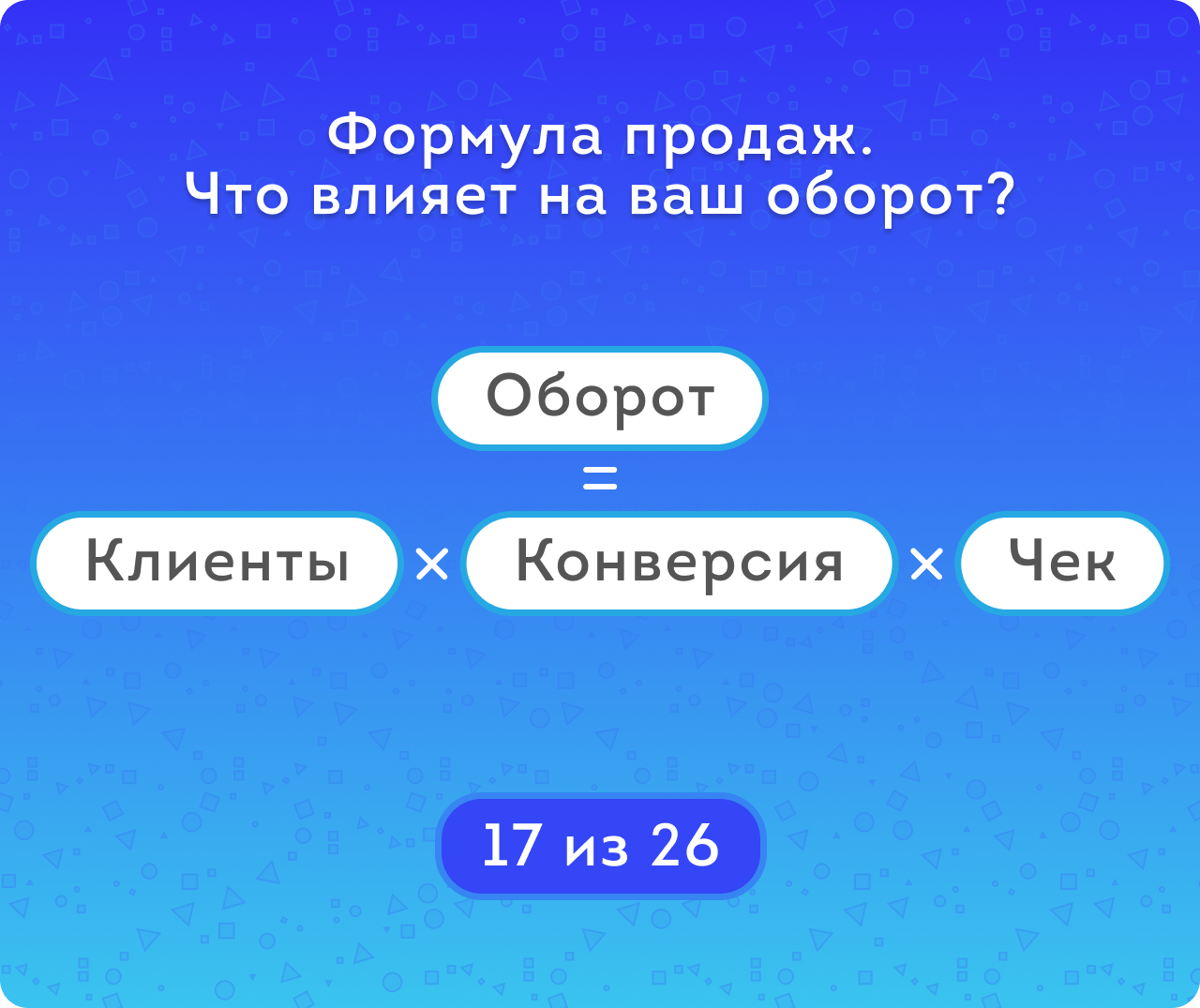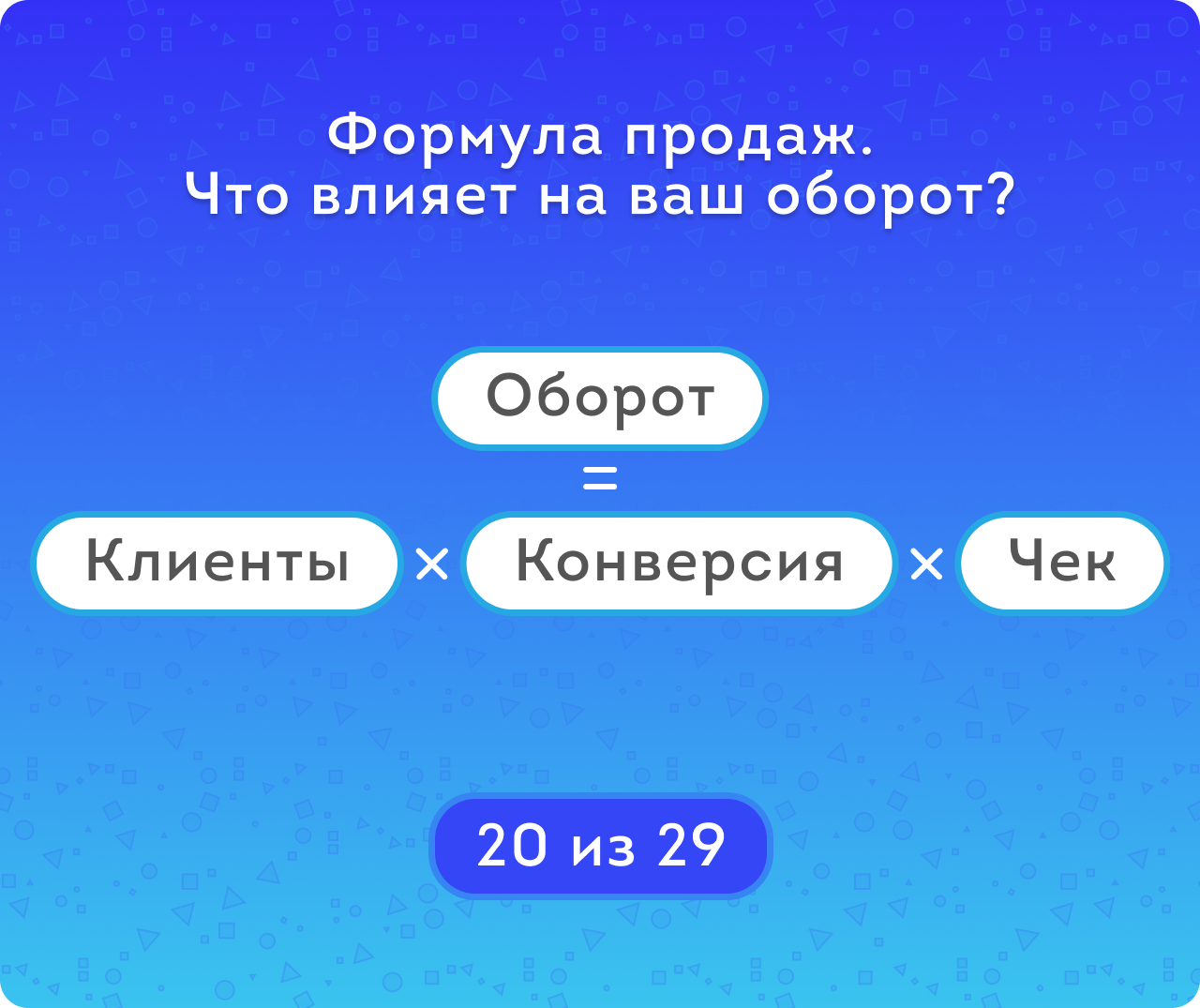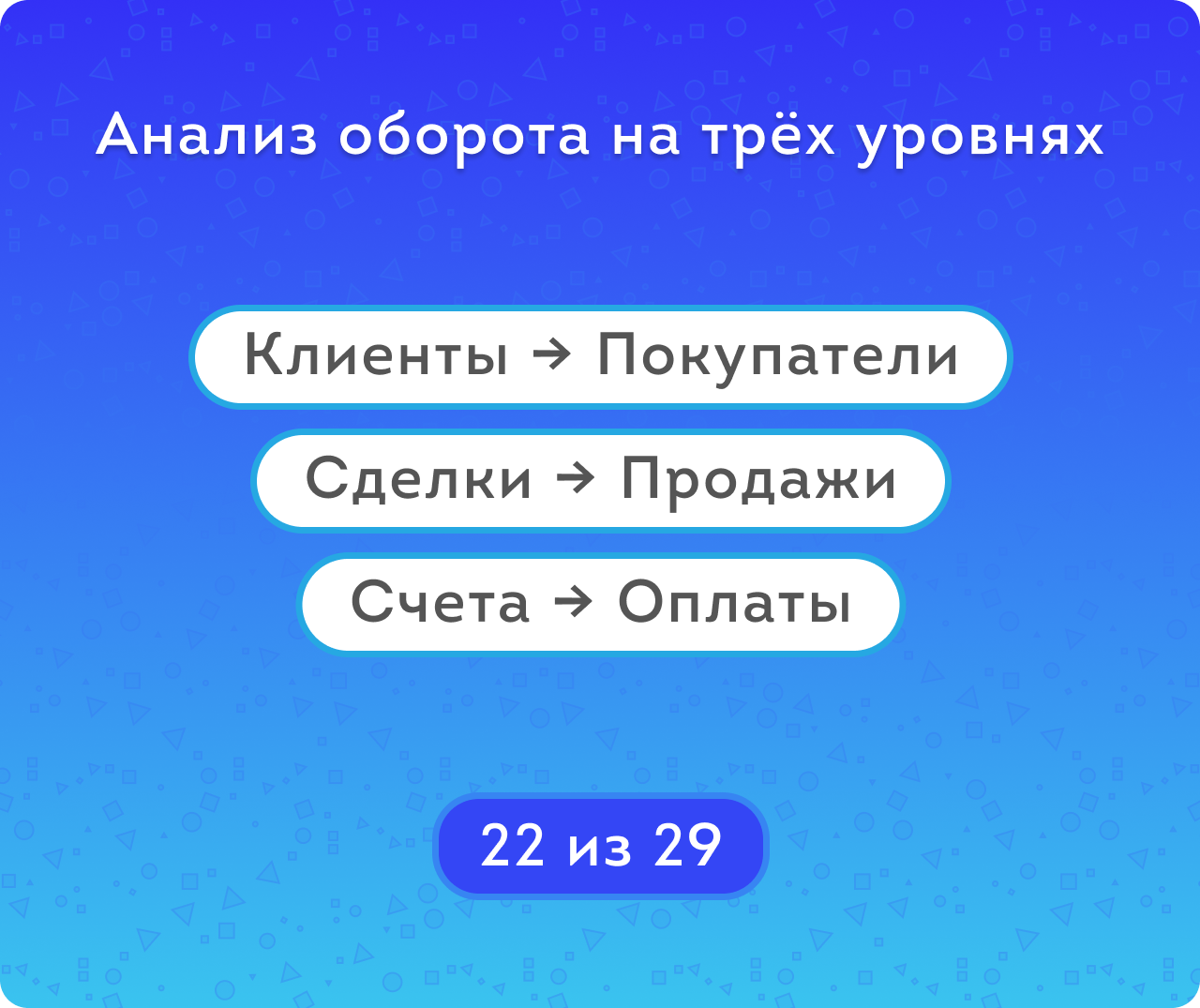 Оборот – это конечный результат работы системы продаж, на который влияют многие факторы. Формула продаж и ABC-анализ помогает понять, как формируется ваш Оборот по трем уровням: