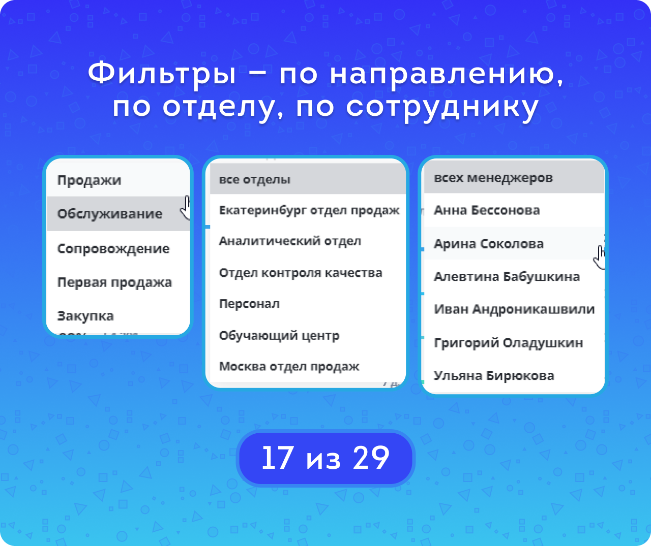 — 25.04.2025: Добавлены фильтры по воронкам, отделам и менеджерам