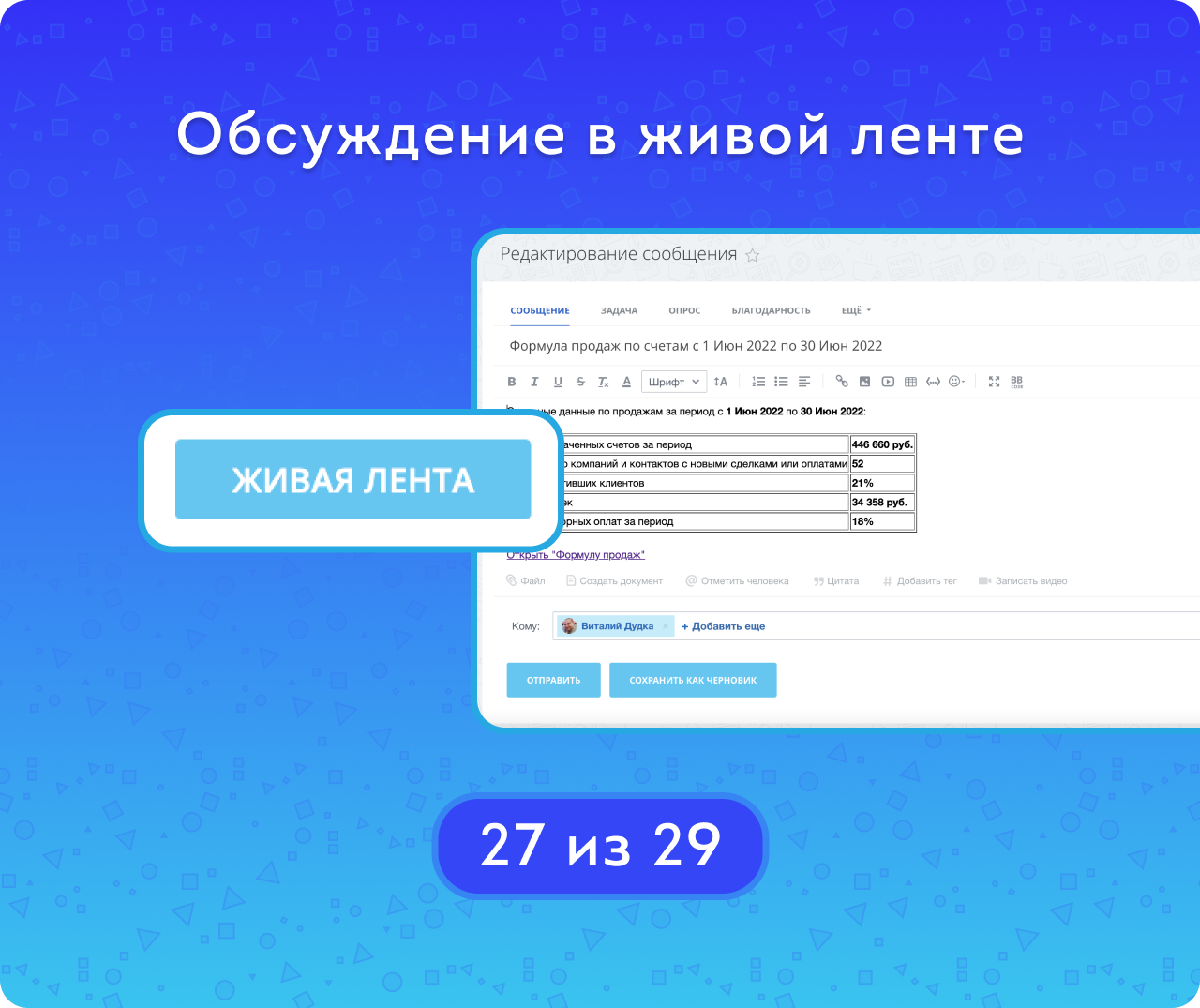 Публикация в ленту Новостей для обсуждения с коллегами.