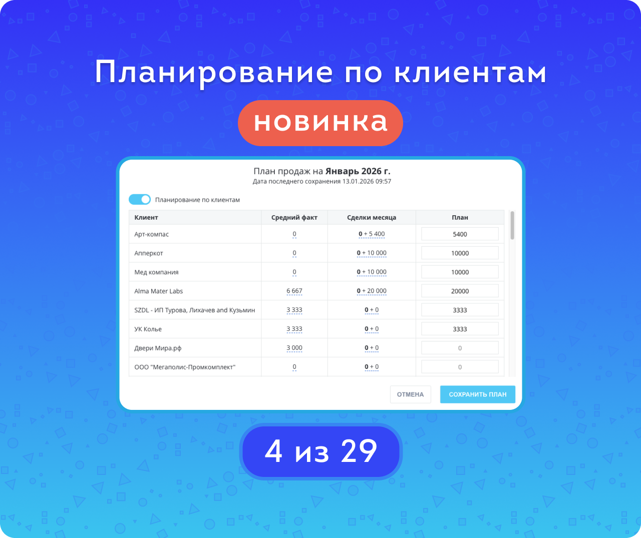 — 21.01.2026: Новый режим «Воронка продаж по счетам» и планирование по клиентам